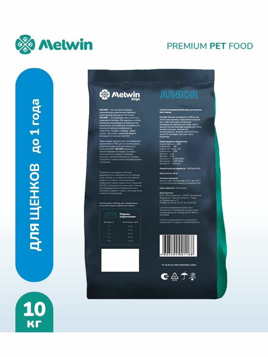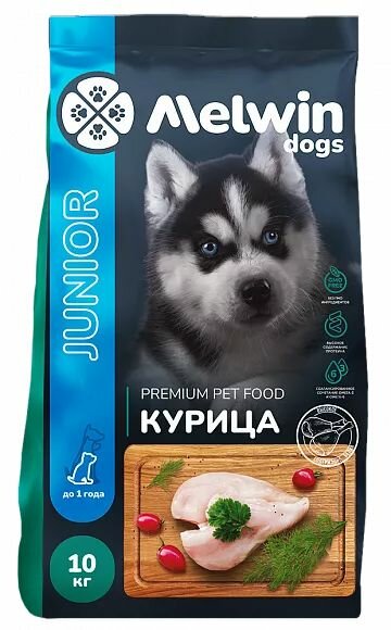 Сухой корм Melwin "Курица", для щенков всех пород до 1 года, премиум, 1 кг