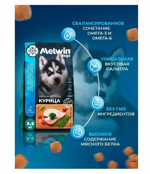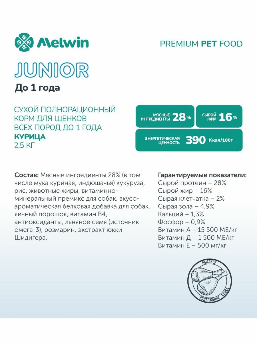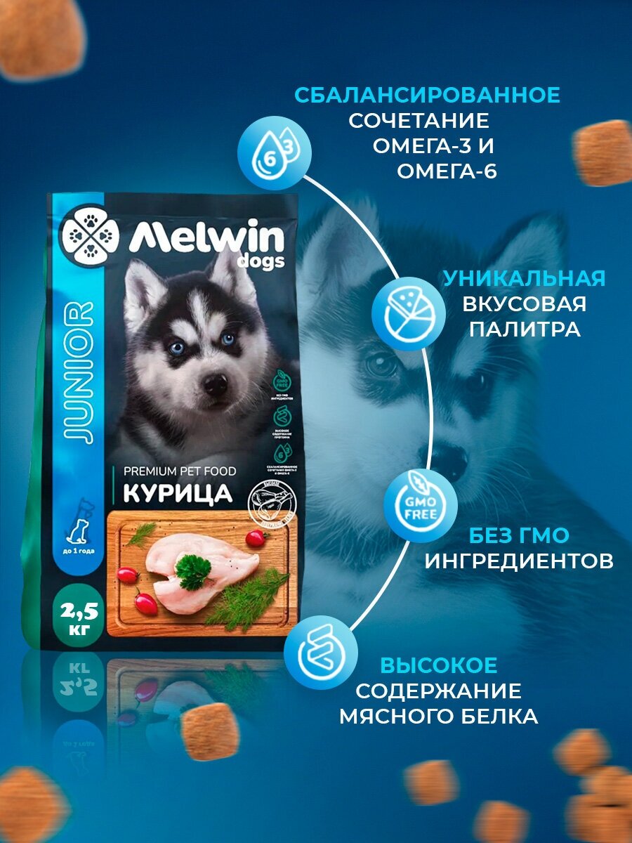 Сухой корм Melwin для любых щенков до 1 года, курица 2,5 кг