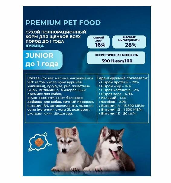 Сухой корм Melwin "Курица", для щенков всех пород до 1 года, премиум, 1 кг