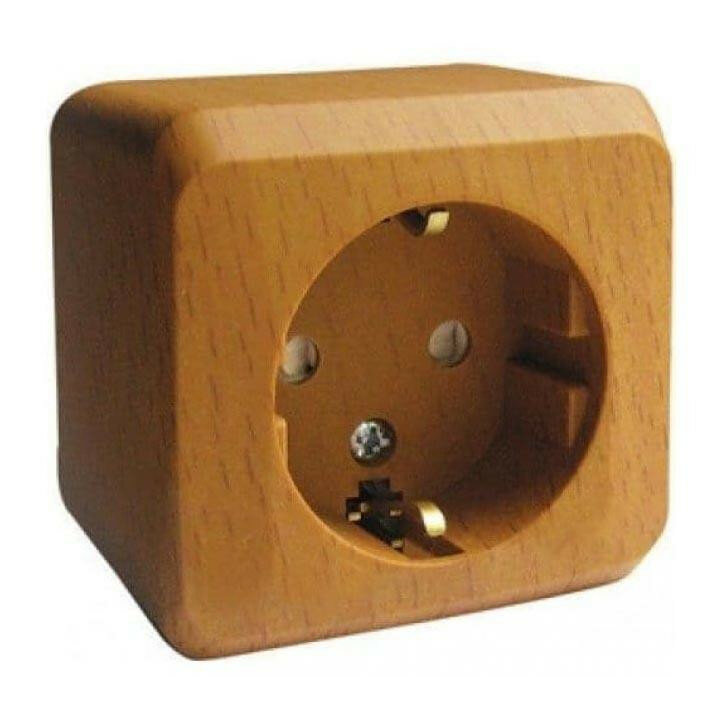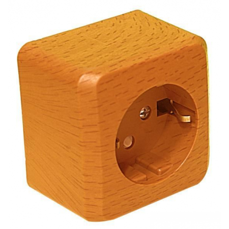Розетка одинарная с заземлением со шторками этюд открытой установки, цвет сосна
