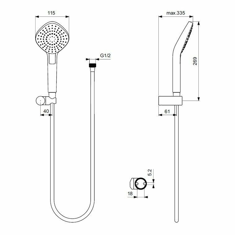 Ручной душ Ideal STANDARD Idealrain Evo Diamond L3 B2240AA, хром хром 1750 мм