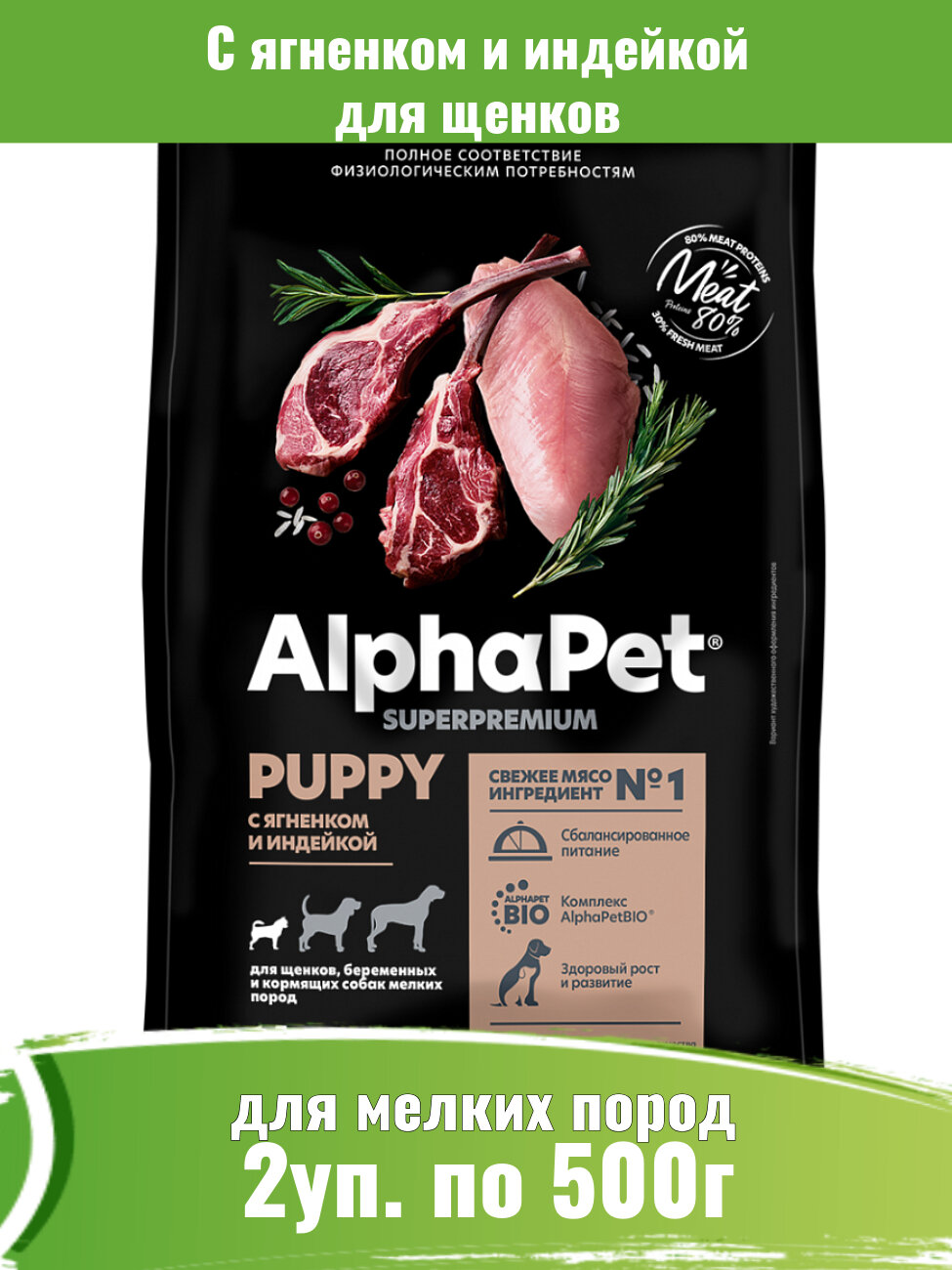 Купить AlphaPet Superpremium Puppy сухой корм для щенков, беременных и кормящих собак мини пород с ягнёнком и индейкой, 500г., 2 шт.