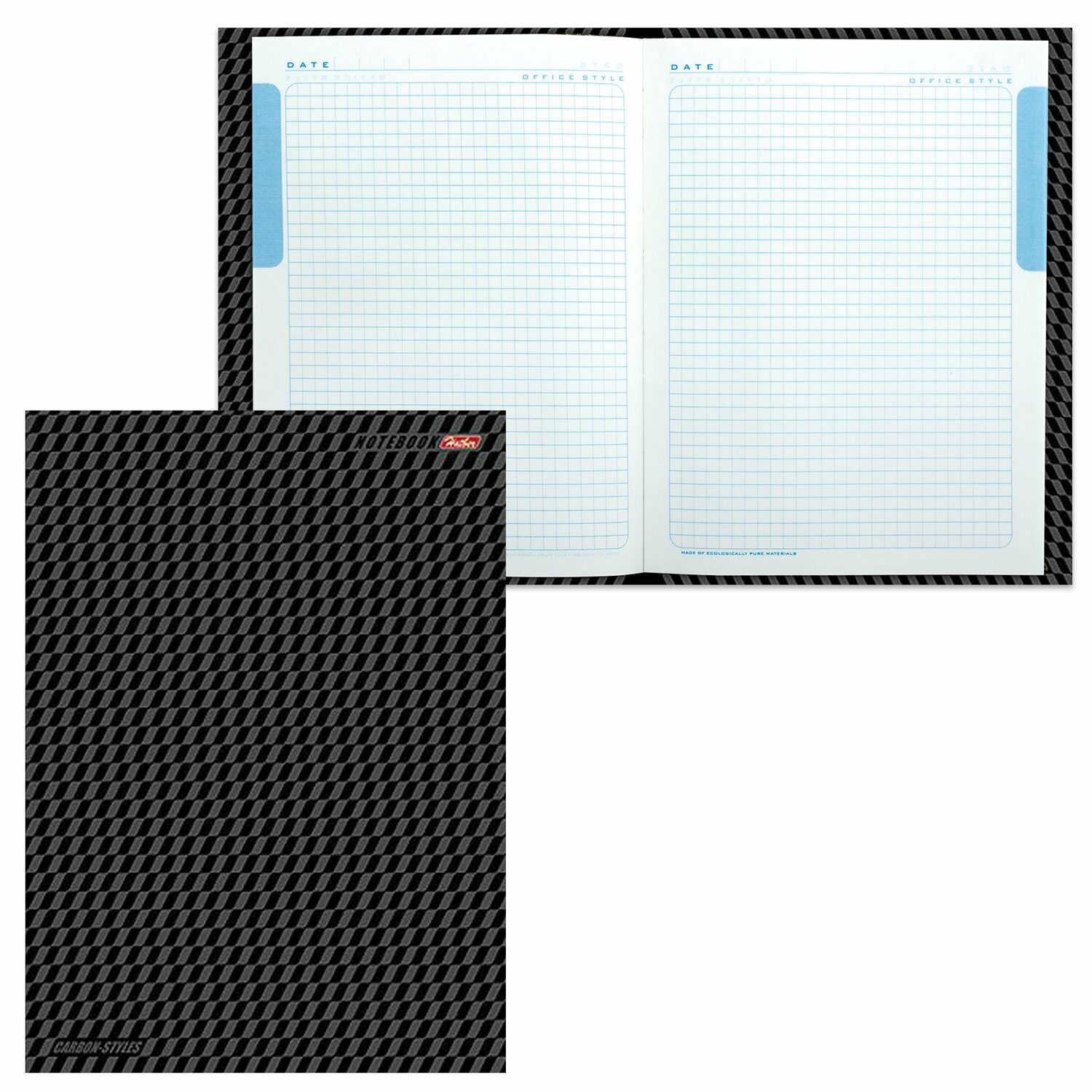 Блокнот большой формат А4 205×290 мм, 80 л., твердый переплет, выбор. лак, блок 5 цветов, клетка, HATBER, «Carbon Style», 80ББ4влВ1 14359 /Квант продажи 1 ед./