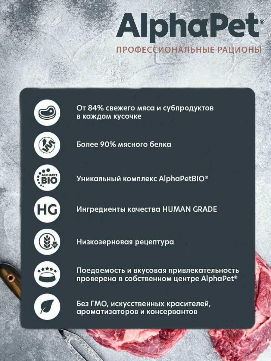 AlphaPet Superpremium (АльфаПет) корм для кошек с говядиной и печенью 2уп по 400г