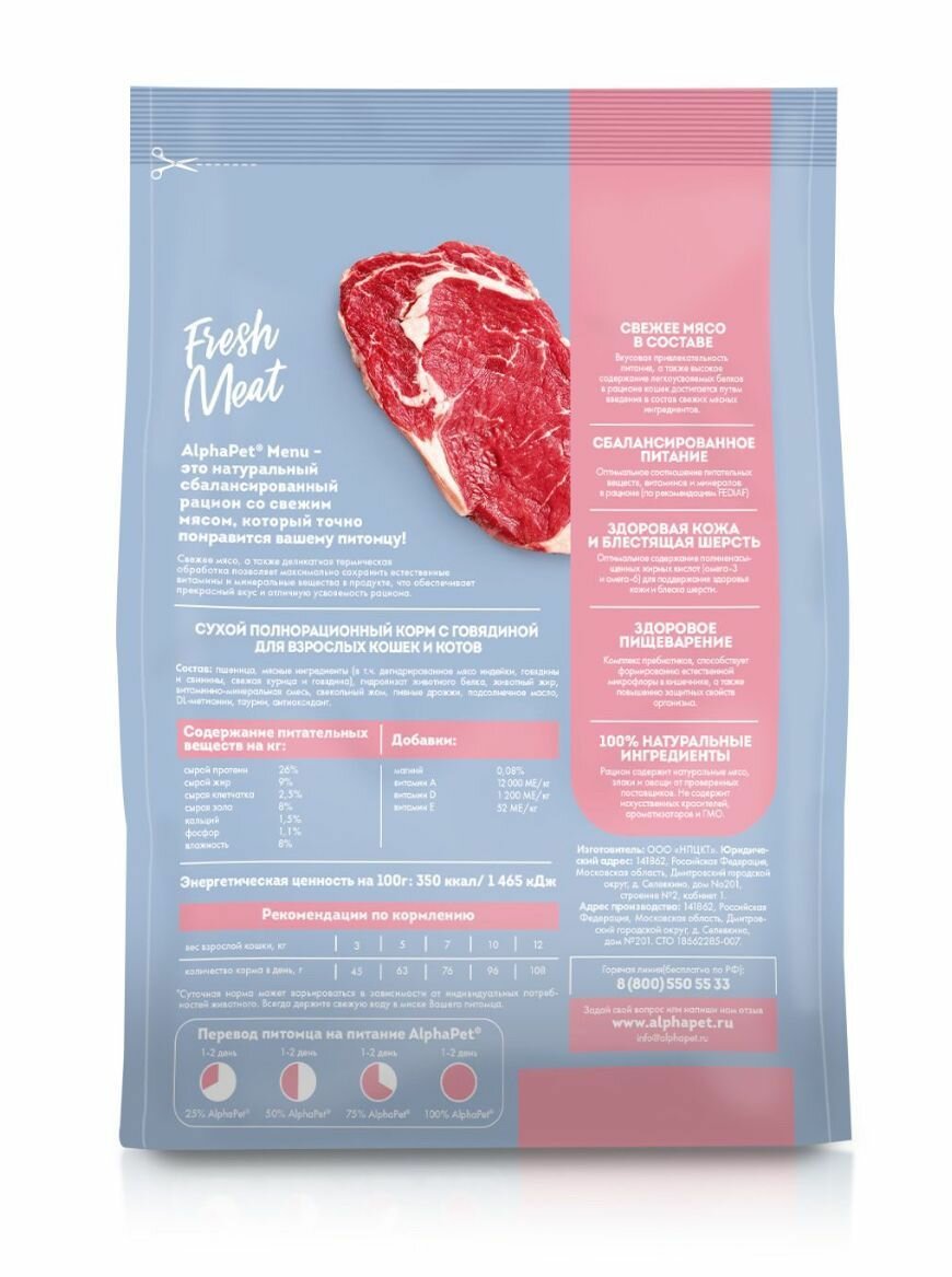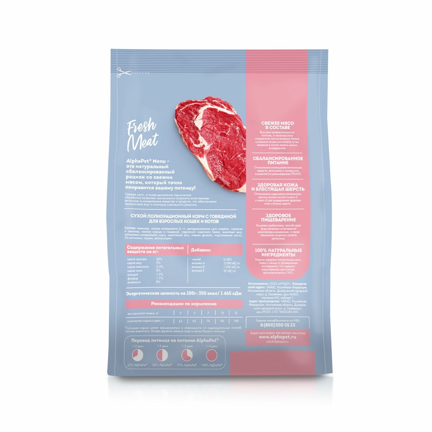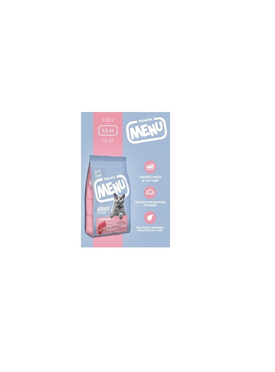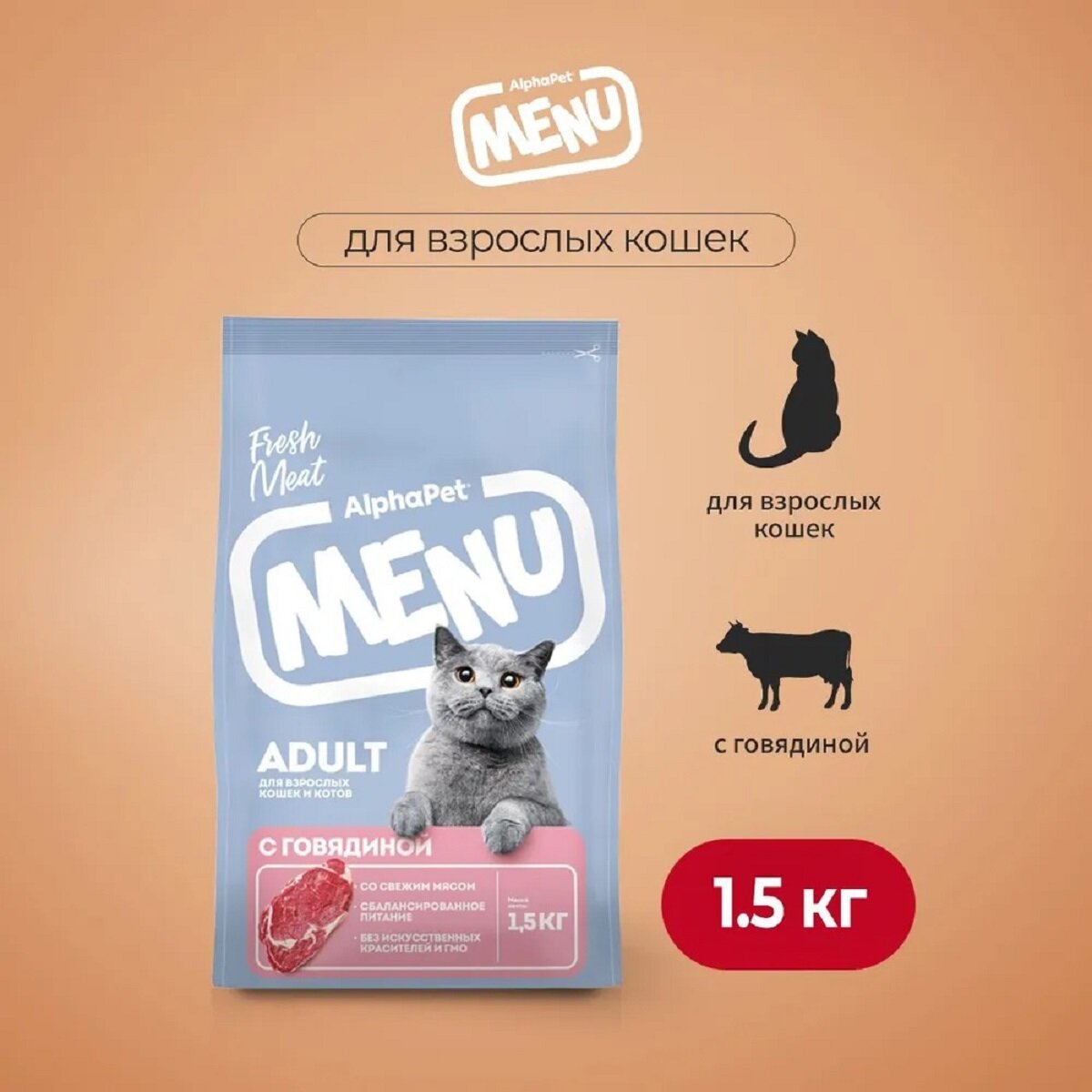 Купить Сухой полнорационный корм с говядиной для взрослых кошек и котов AlphaPet Menu 1,5кг