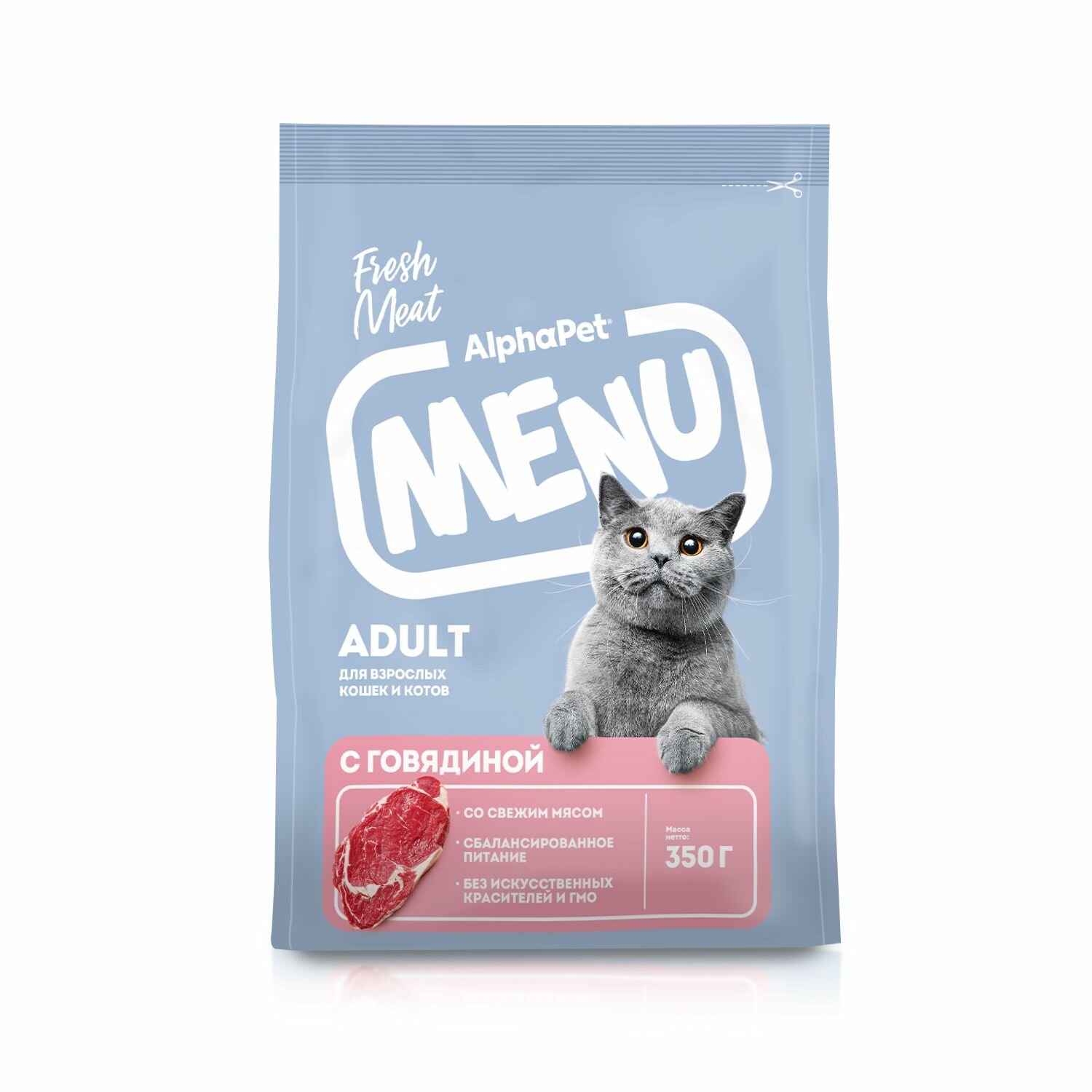 AlphaPet MENU сухой корм для кошек и котов с Говядиной 10кг