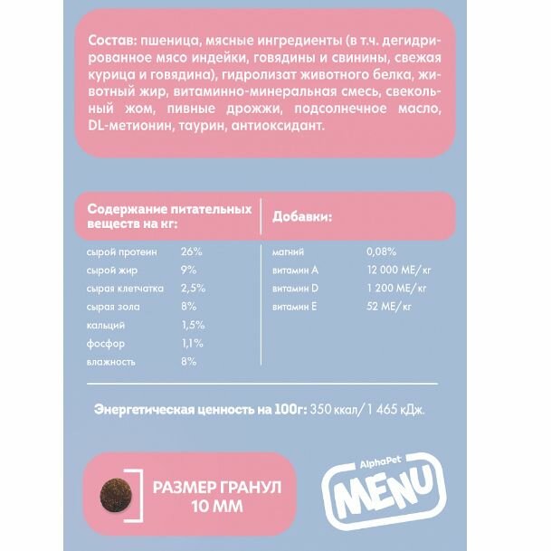 Ниже Вы можете прочитать отзывы на Корм сухой для кошек AlphaPet MENU с говядиной, 1,5 кг, ознакомится с подробными характеристиками, посмотреть интересные обзоры и фотографии на Корм сухой для кошек AlphaPet MENU с говядиной, 1,5 кг.