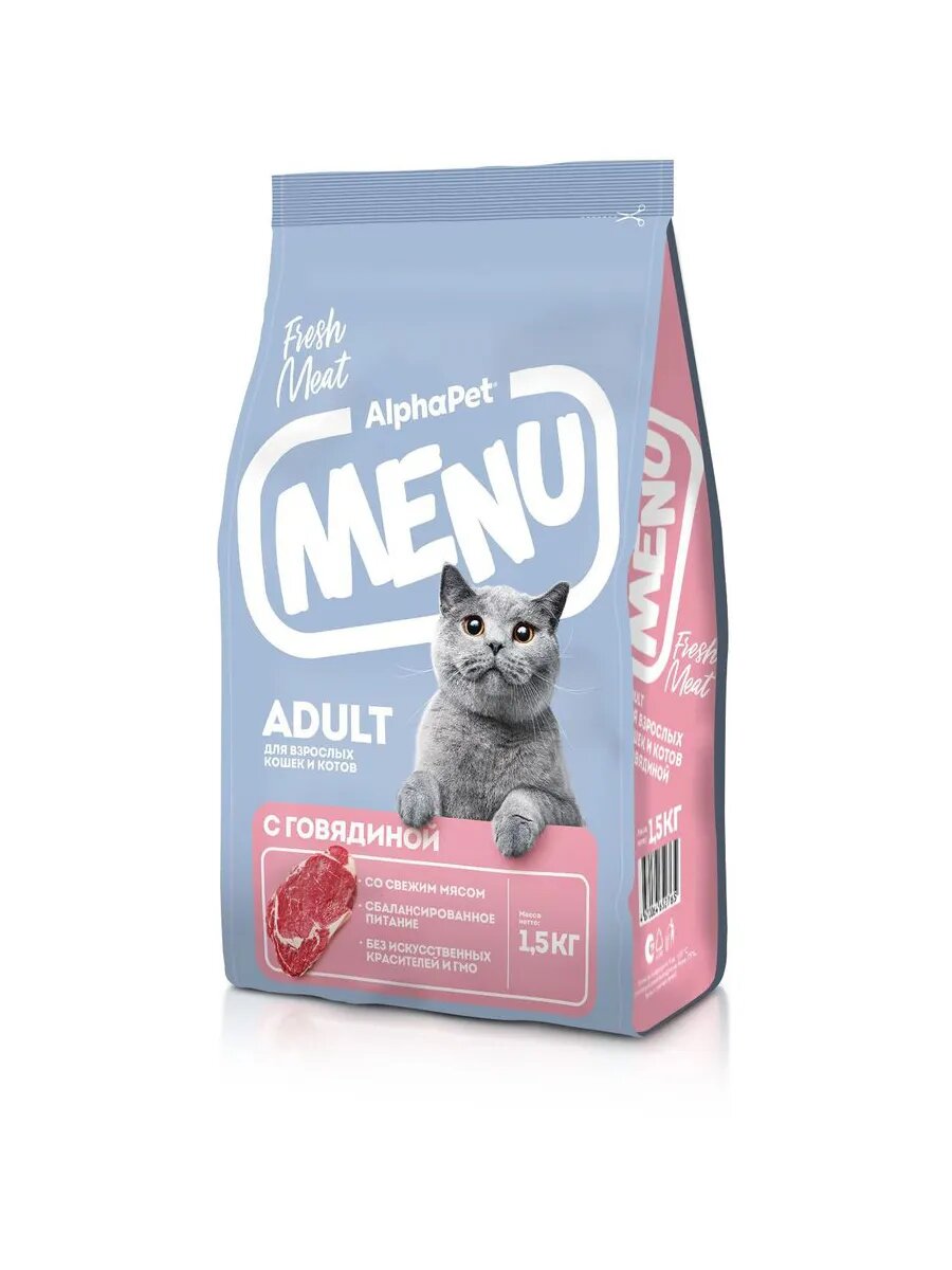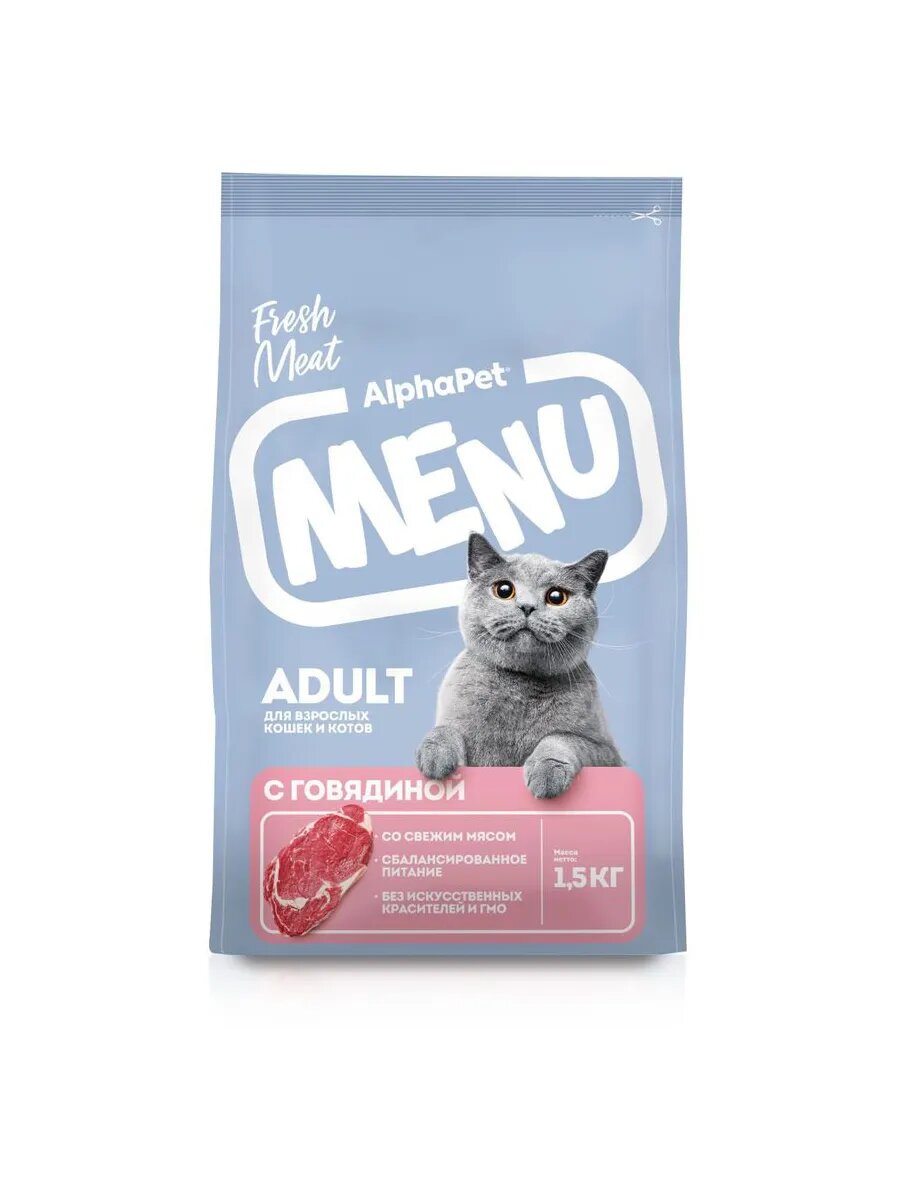 Купить Корм сухой для кошек AlphaPet MENU с говядиной, 1,5 кг