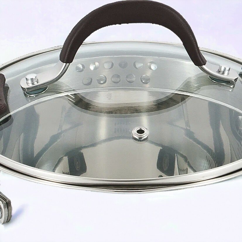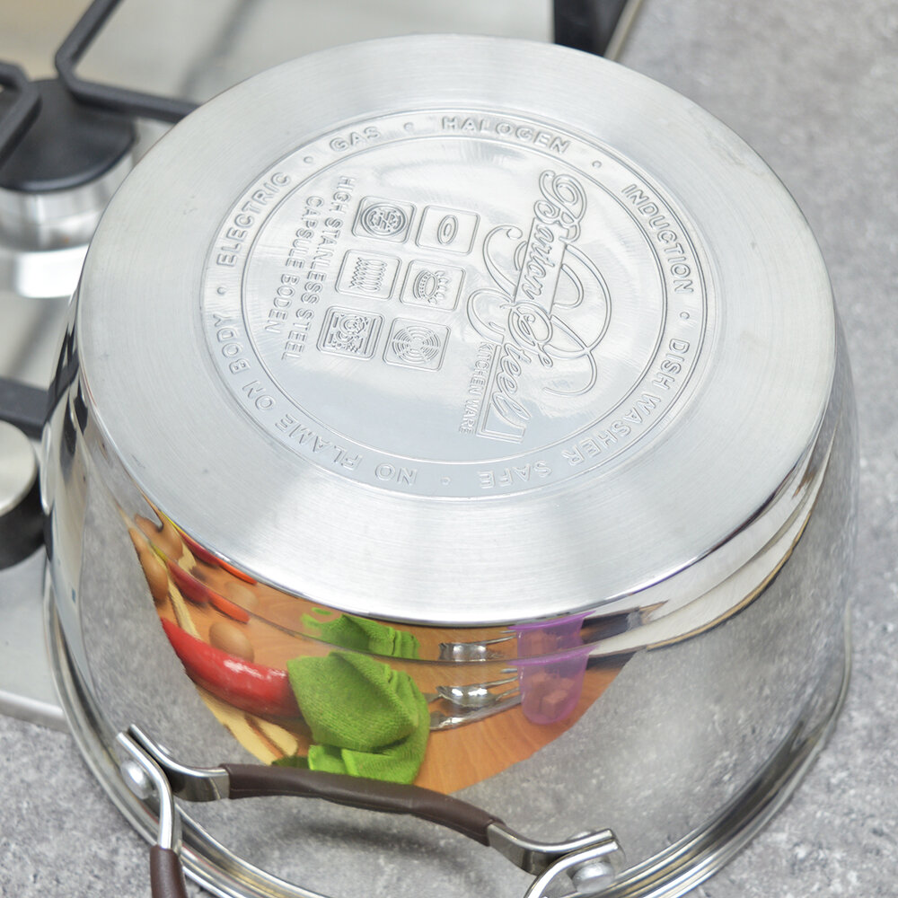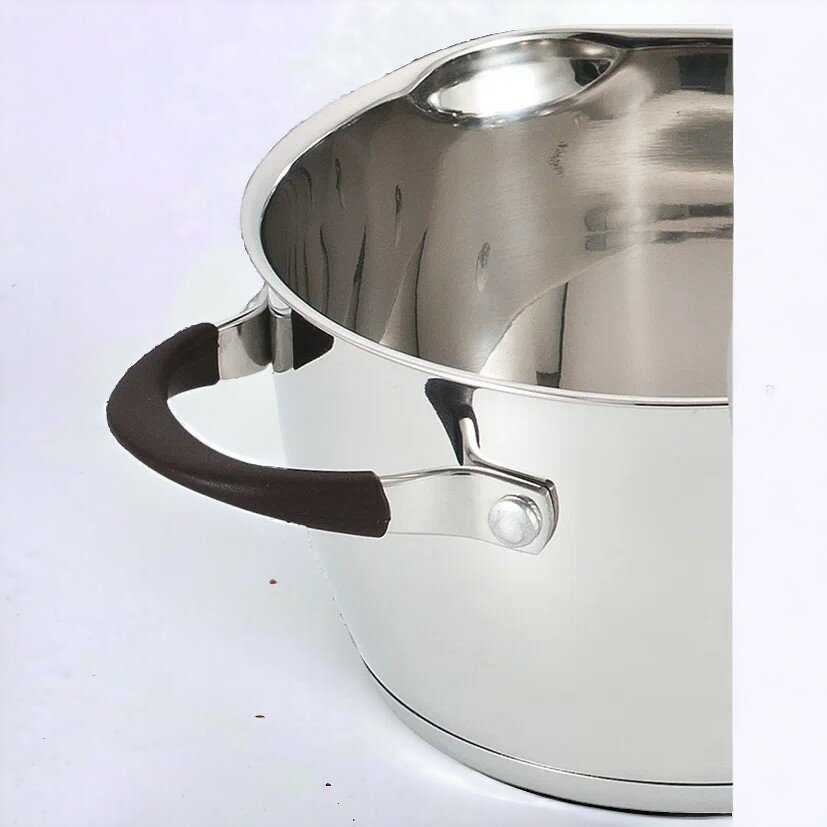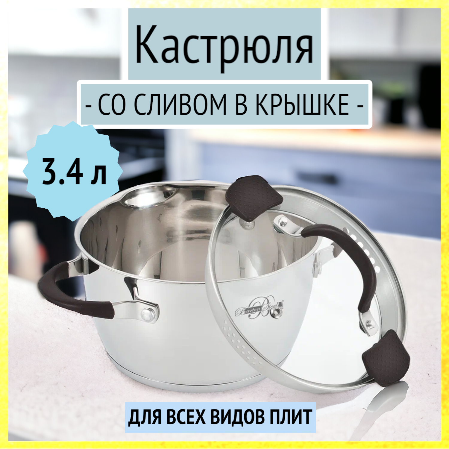 Кастрюля 3.4 л из нержавеющей стали со сливом в крышке Barton Steel BS 2117-20 BR, коричневая ручка
