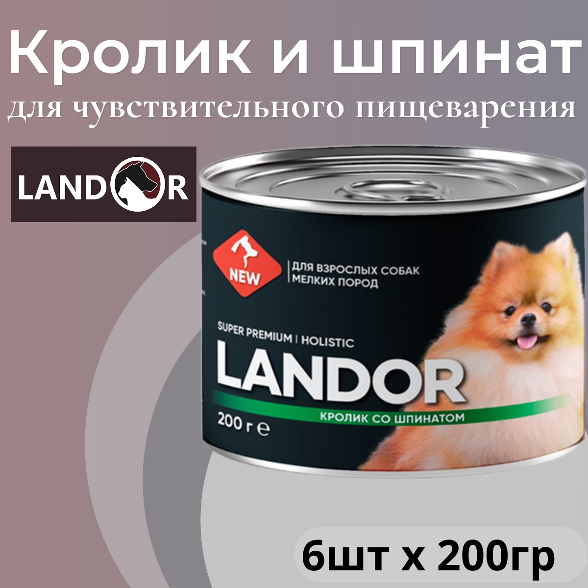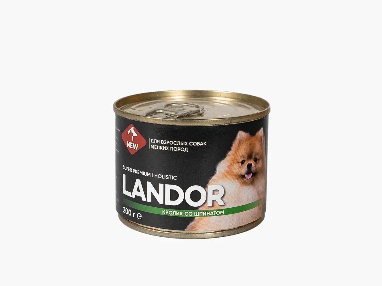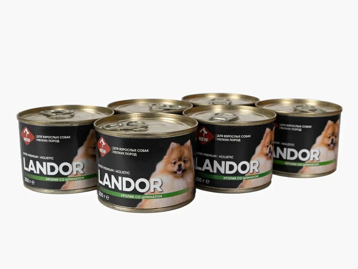 Полнорационный влажный корм LANDOR для собак мелких пород, кролик со шпинатом, 200г х 6шт. интересное: