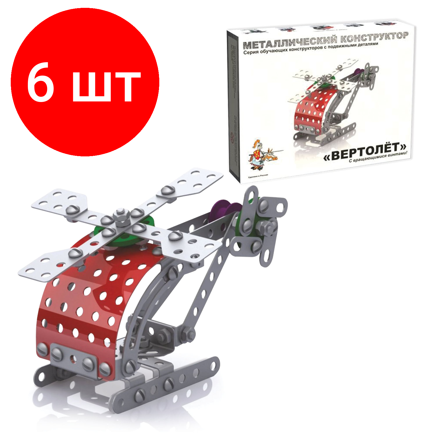 Купить Комплект 6 шт, Конструктор металлический "Вертолет", с подвижными деталями, 121 элемент, "Десятое королевство", 02028