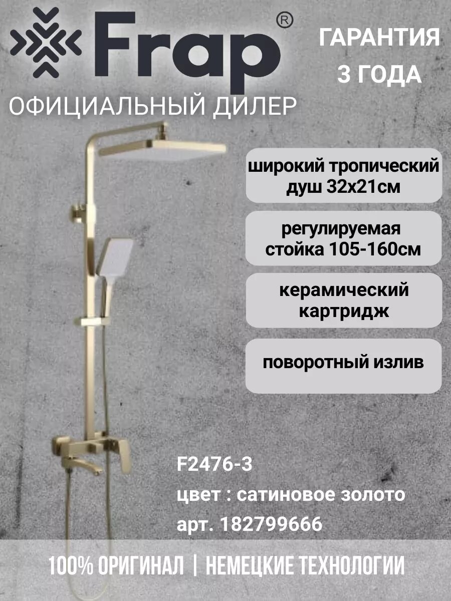 Ниже Вы можете прочитать отзывы на Душевая система Frap F2476-3 со смесителем, золотой сатин, ознакомится с подробными характеристиками, посмотреть интересные обзоры и фотографии на Душевая система Frap F2476-3 со смесителем, золотой сатин.