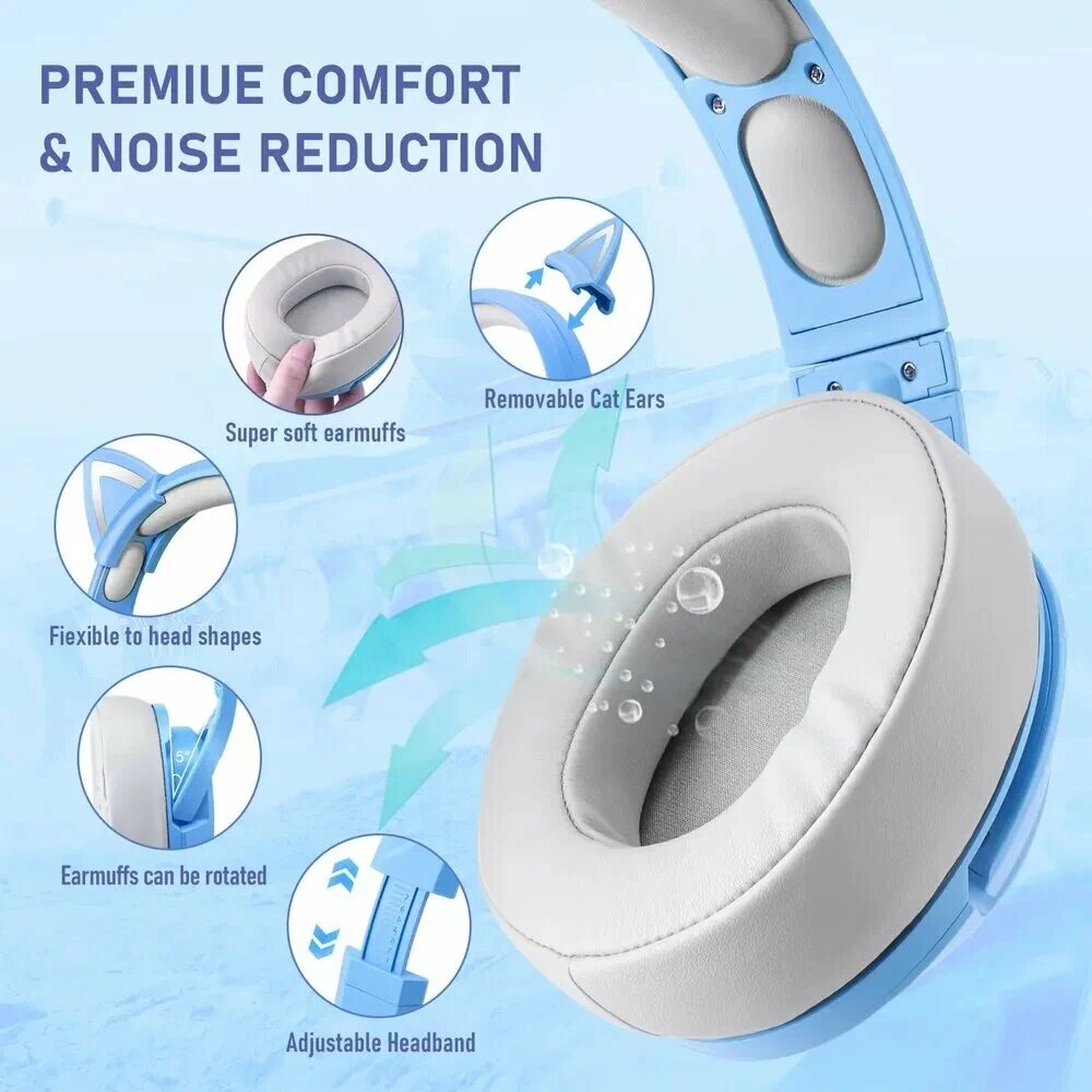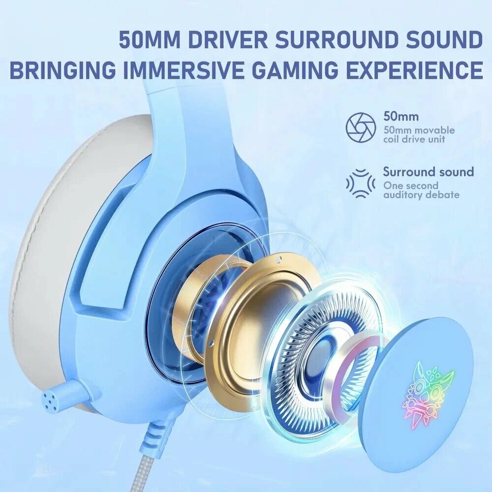 Игровые наушники с кошачьими ушками, Onikuma X10 для компьютера с микрофоном, PC, Голубой интересное: