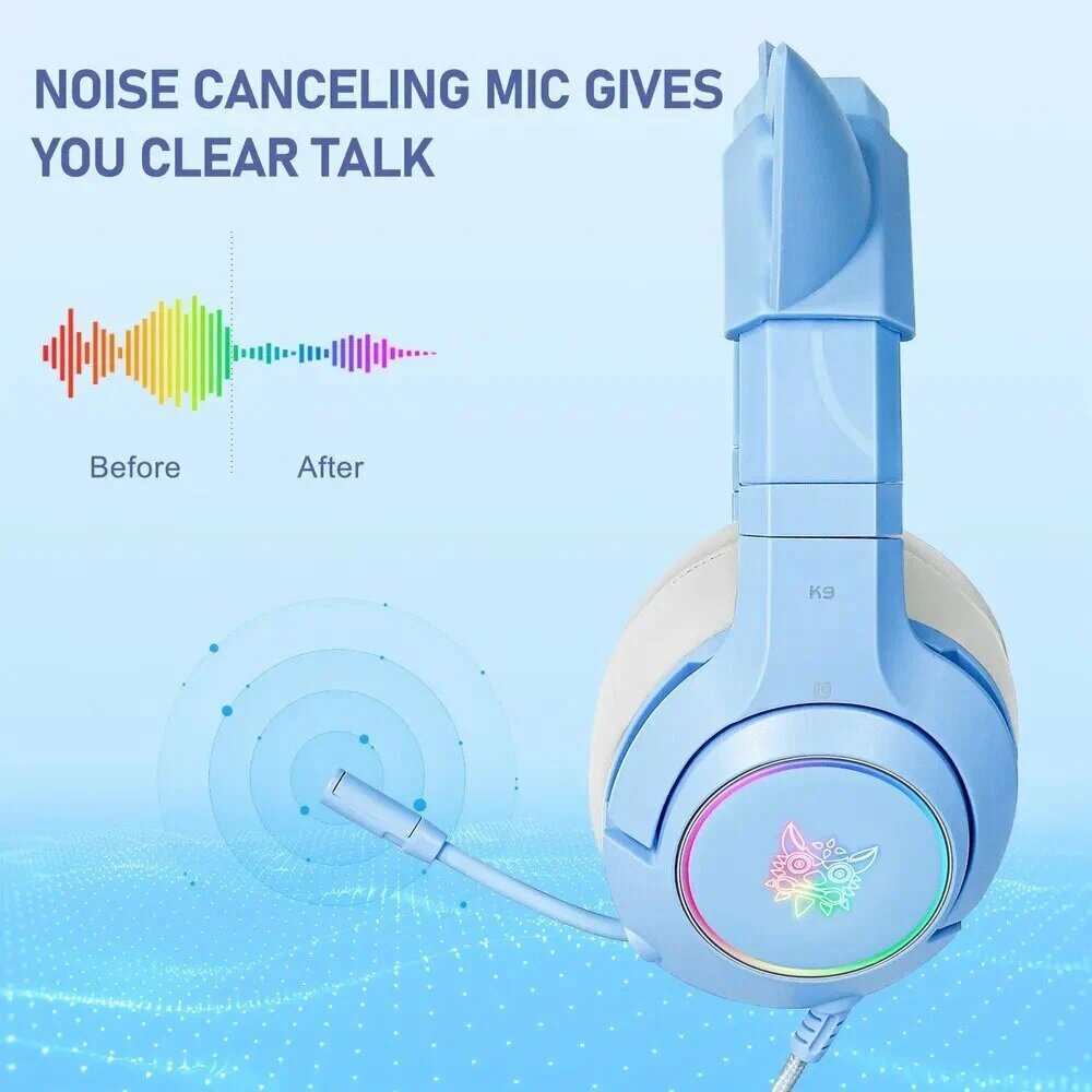 Купить Игровые наушники с кошачьими ушками, Onikuma X10 для компьютера с микрофоном, PC, Голубой