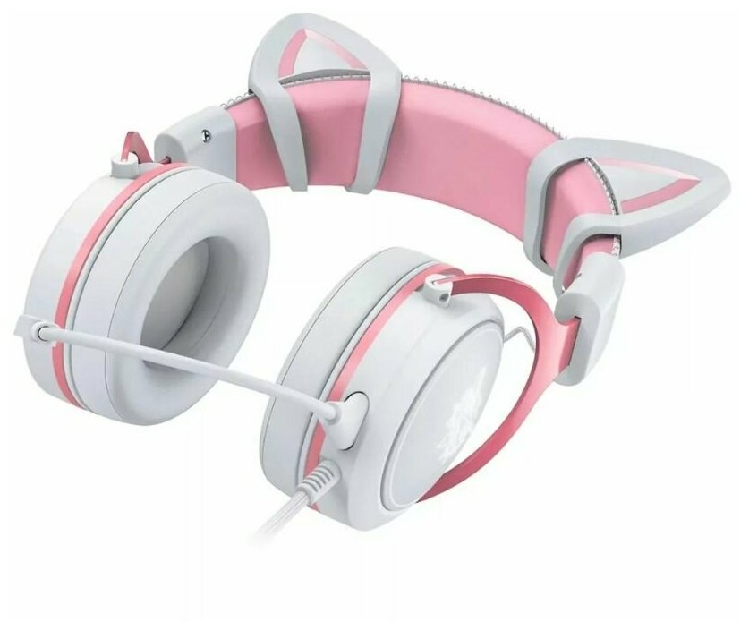Игровые наушники с кошачьими ушками, Onikuma X10 для компьютера с микрофоном, PC, белые с розовым