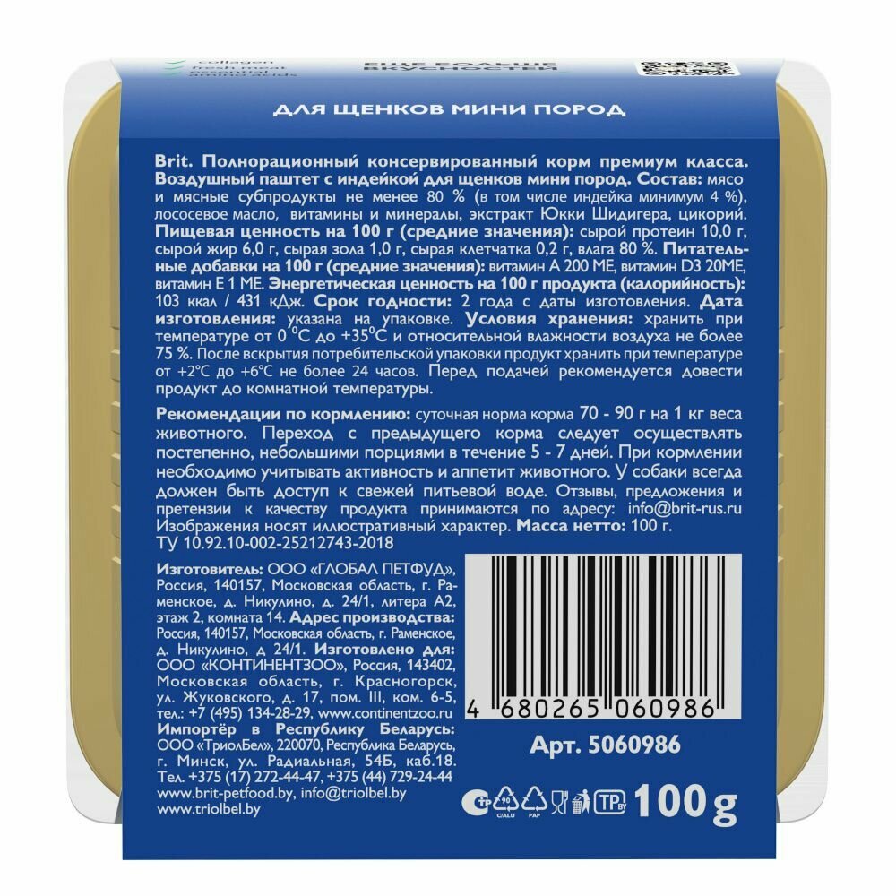 Brit воздушный паштет для щенков мини пород Индейка, 100 г. упаковка 14 шт