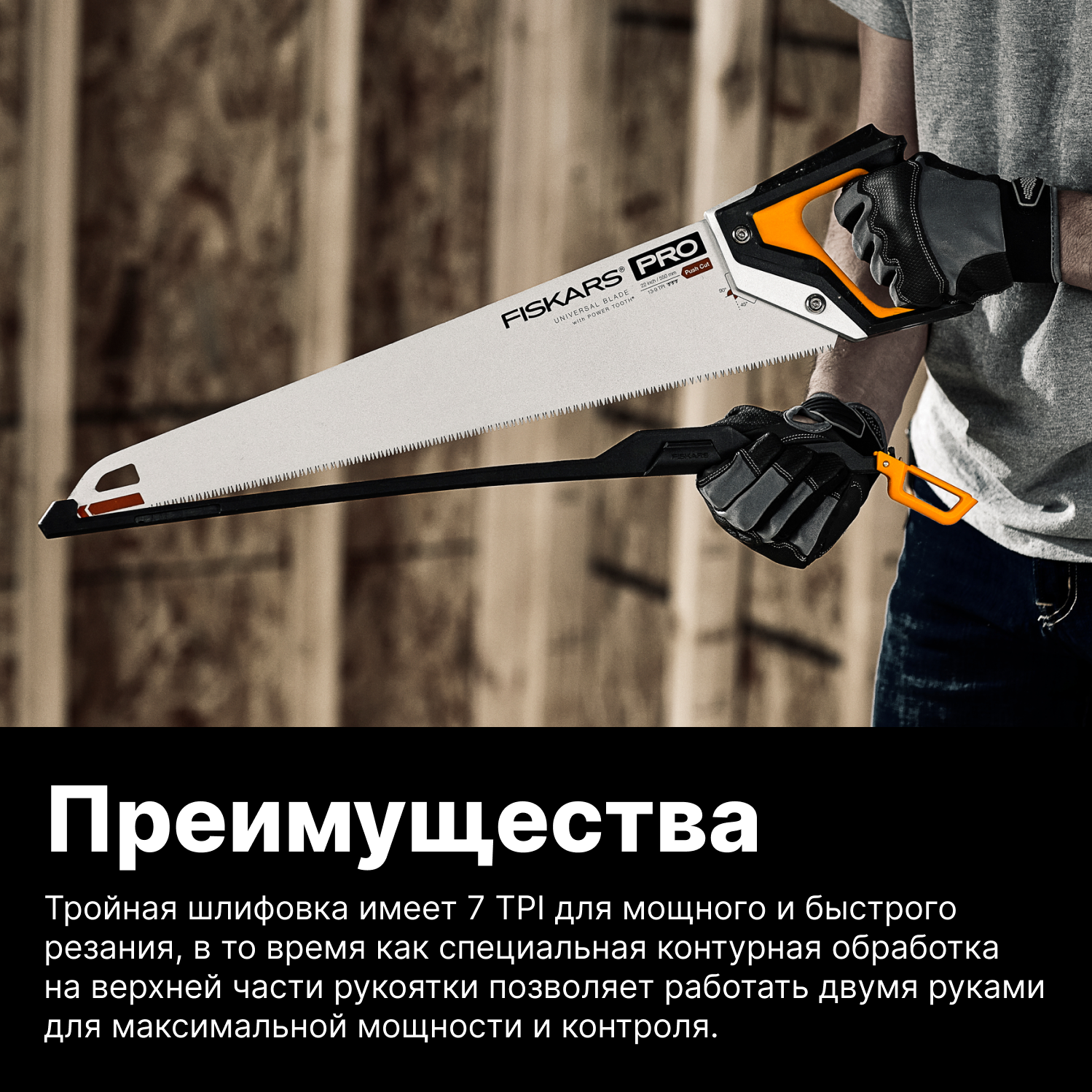 Ножовка Fiskars по дереву PowerTooth 550мм 7 зубьев на дюйм 1062916