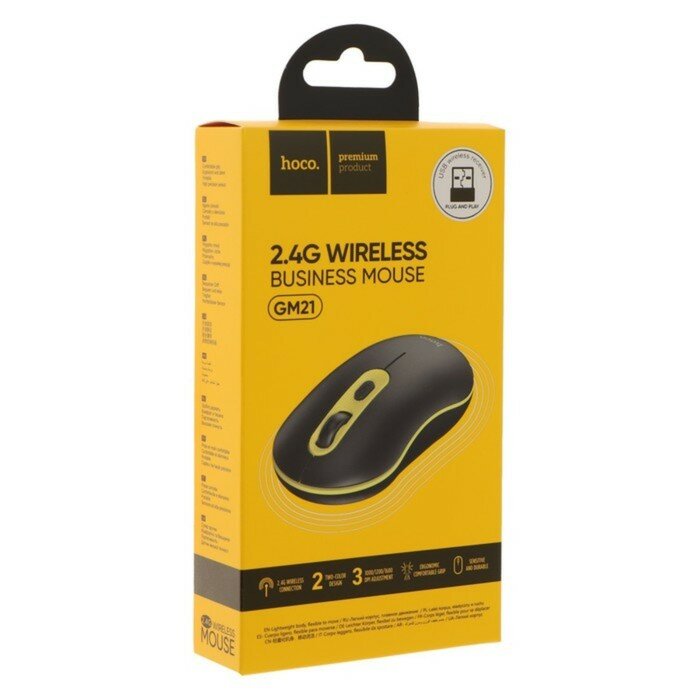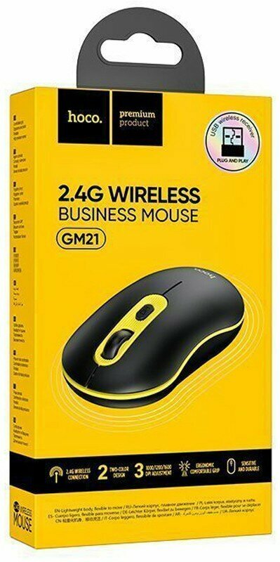 Мышь беспроводная Hoco GM21 Platinum 2.4G 1000/1200/1600 dpi, черно-желтая