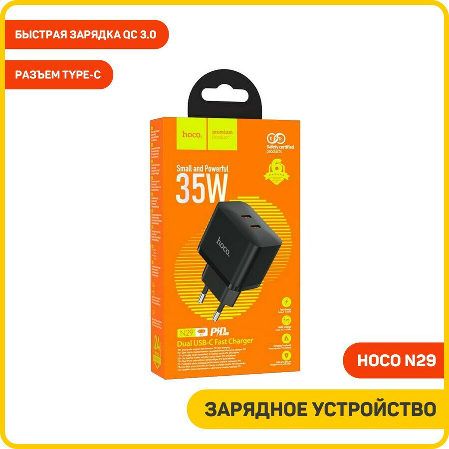 Сетевое зарядное устройство (СЗУ) Hoco N29 (2 Type-C PD) 3 А, черный