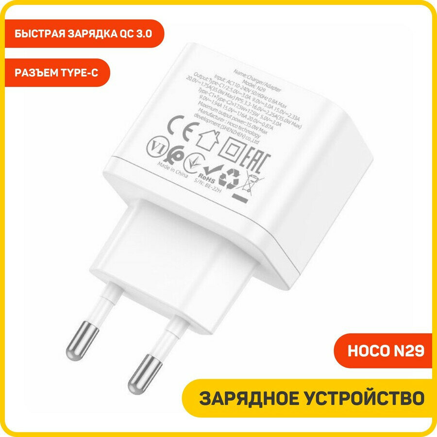 Купить Сетевое зарядное устройство (СЗУ) Hoco N29 (2 Type-C PD) 3 А, белый