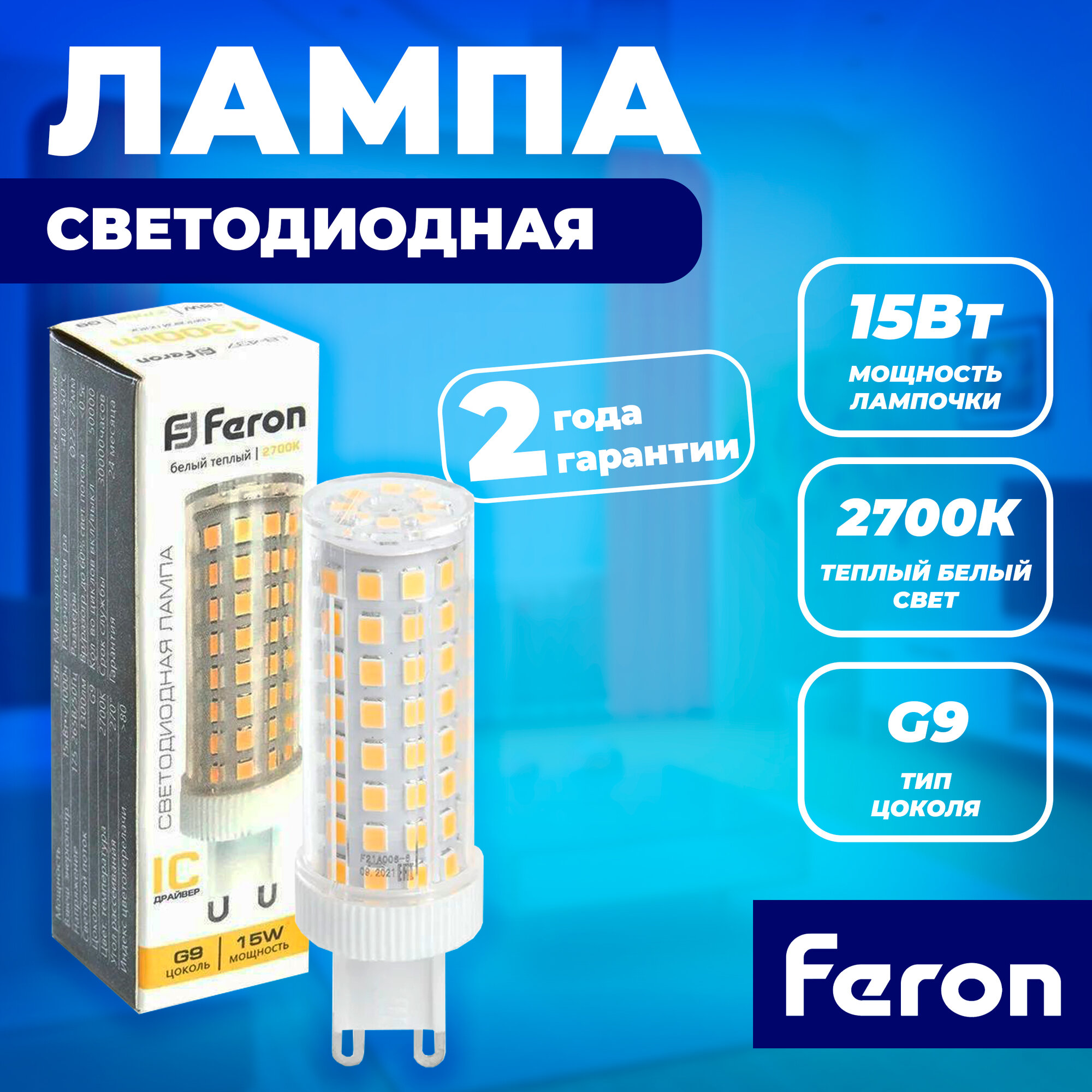 FERON Лампа светодиодная LB-437 G9 15W 2700K 38212