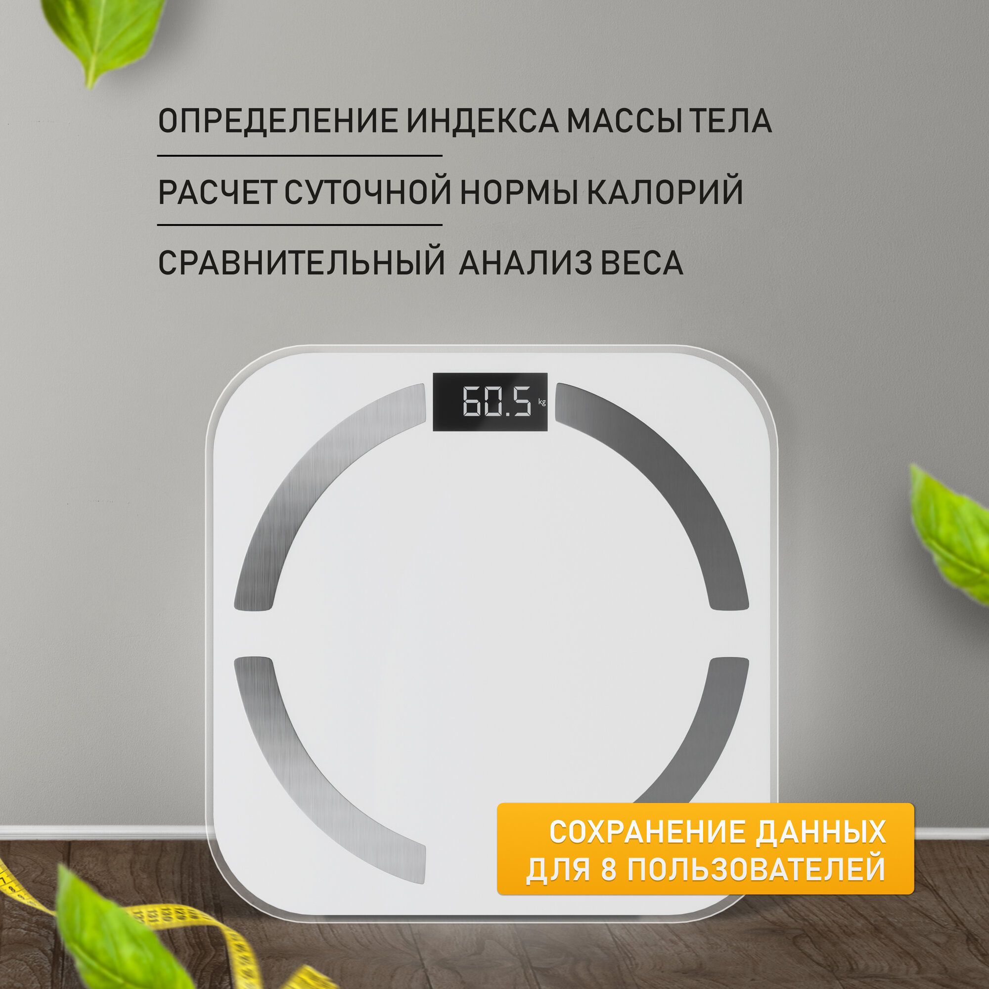 | Дополнительная информация | Автоматическое включение и отключение, Приложение для контроля веса и здоровья, Шаг измерений 0.1 кг, Определение индекса массы тела, Расчет суточной нормы калорий, Сохранение до 8 пользователей, Сравнительный анализ веса |