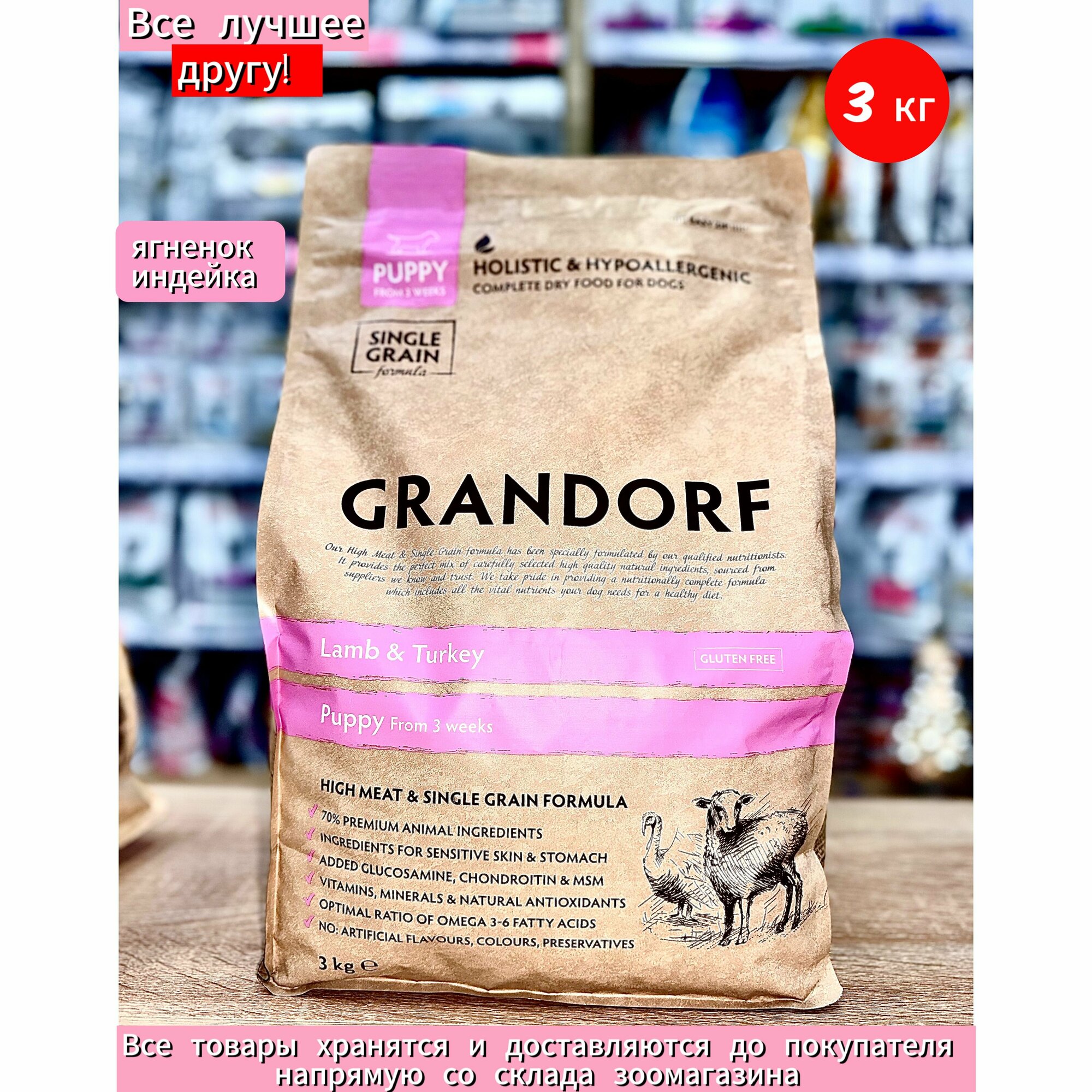 Корм сухой GRANDORF для собак (Puppy) Ягнёнок с индейкой 3 кг. Для щенков в возрасте от 3 недель, беременных и кормящих, низкозерновой