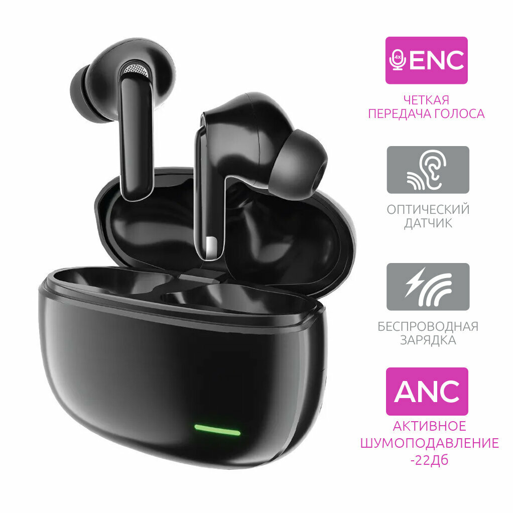 Беспроводные наушники OLMIO TWE-022, шумоподавление, черные