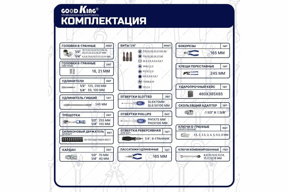 Набор инструментов GOODKING, 110 предметов, трещотка 1/2", 1/4", универсальный, для ремонтных и точных работ (M-10110) интересное:
