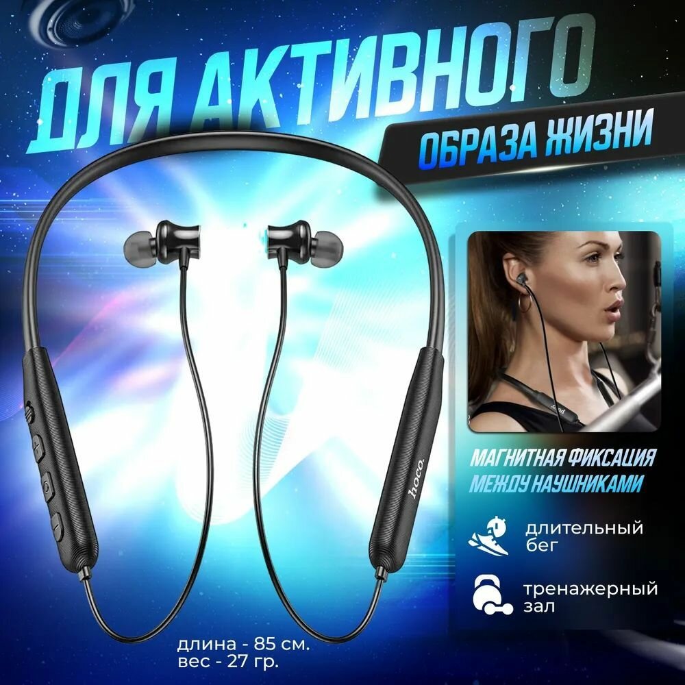 Беспроводные наушники ES64, HOCO, спортивные наушники с обручем, черные