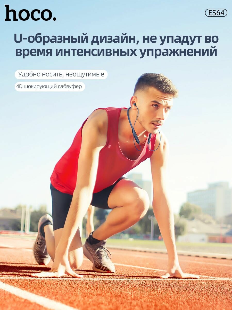 Наушники беспроводные с микрофоном Hoco ES64 Easy Sound, спортивные, синие