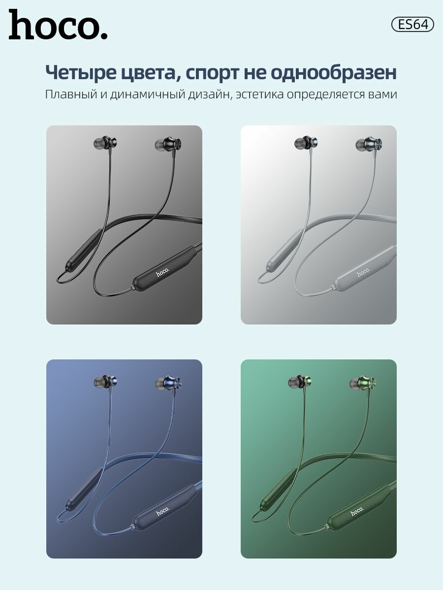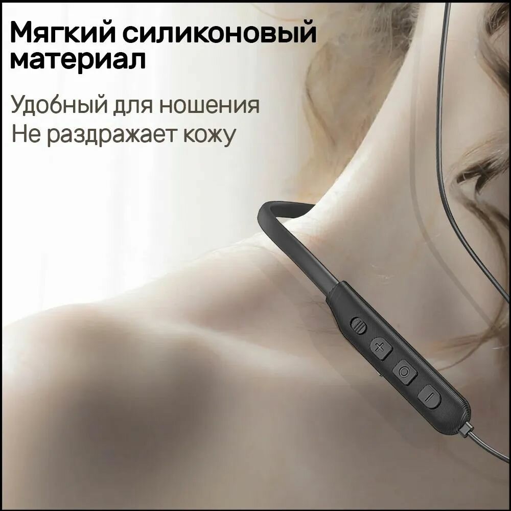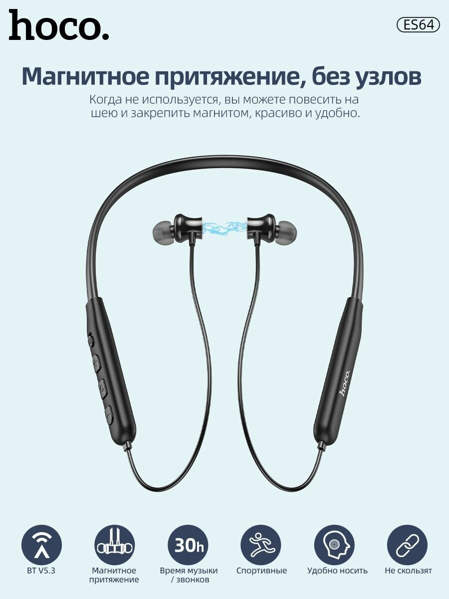 Беспроводные Bluetooth-наушники вакуумные с шейным силиконовым ободом Hoco ES64 Sport Wireless, 30 часов работы, серые