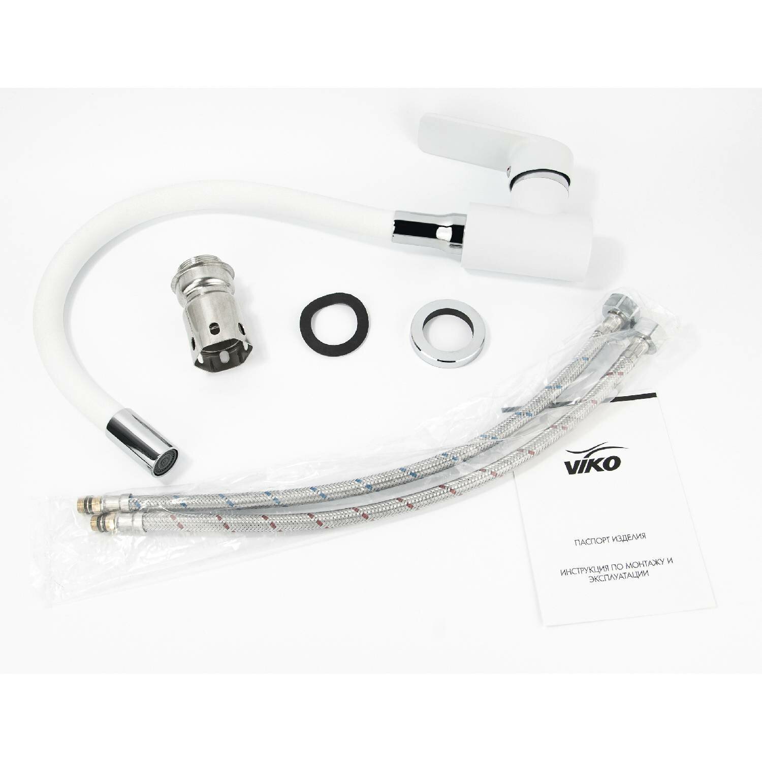 Смеситель для кухни VIKO V-7758 нерж. сталь, с гибким изливом, белый/хром