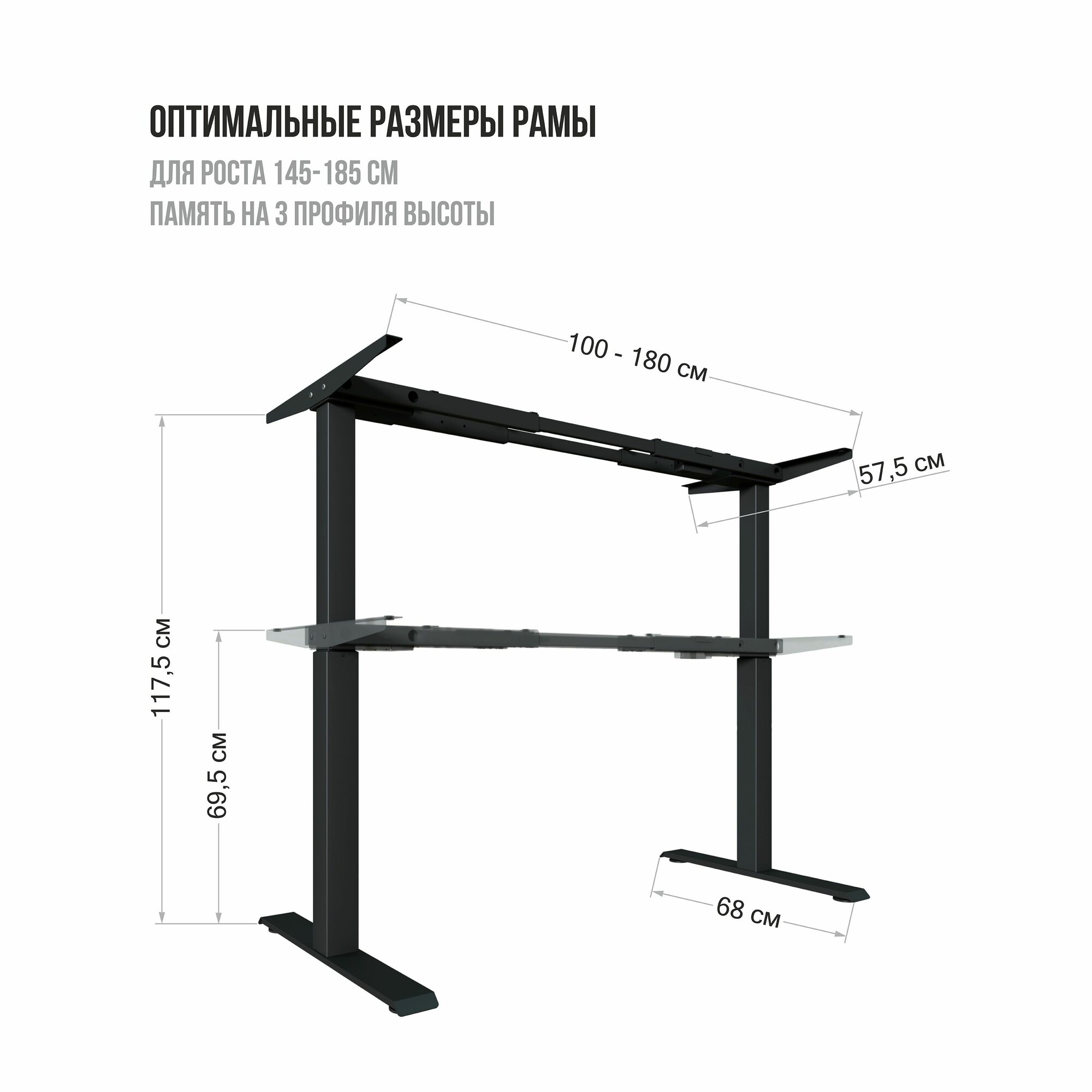 Стол компьютерный регулируемый по высоте Ergostol Optima 2.0 160х80 см, Серый асфальт/черный