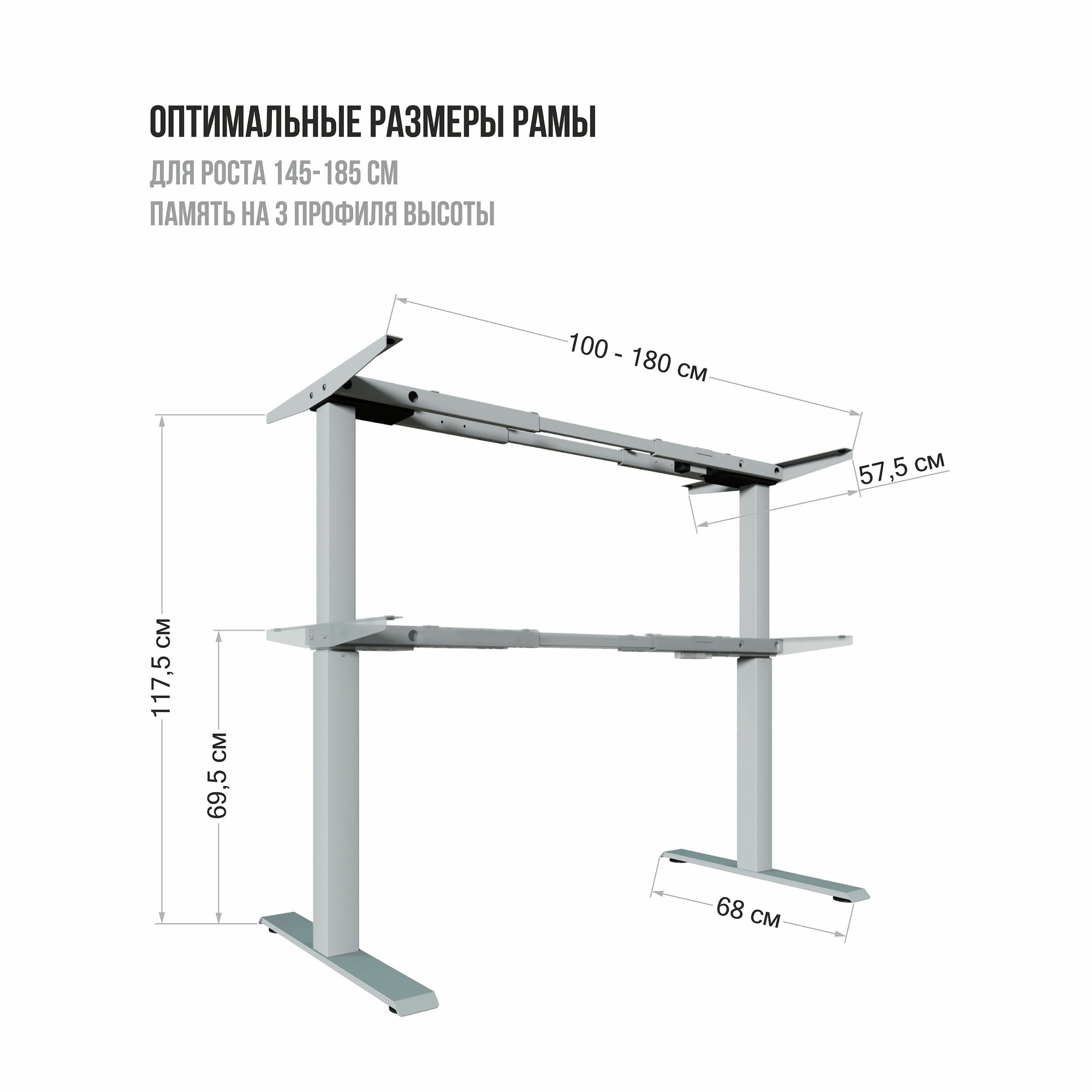 Стол компьютерный регулируемый по высоте Ergostol Optima 2.0 160х80 см, Серый асфальт/черный