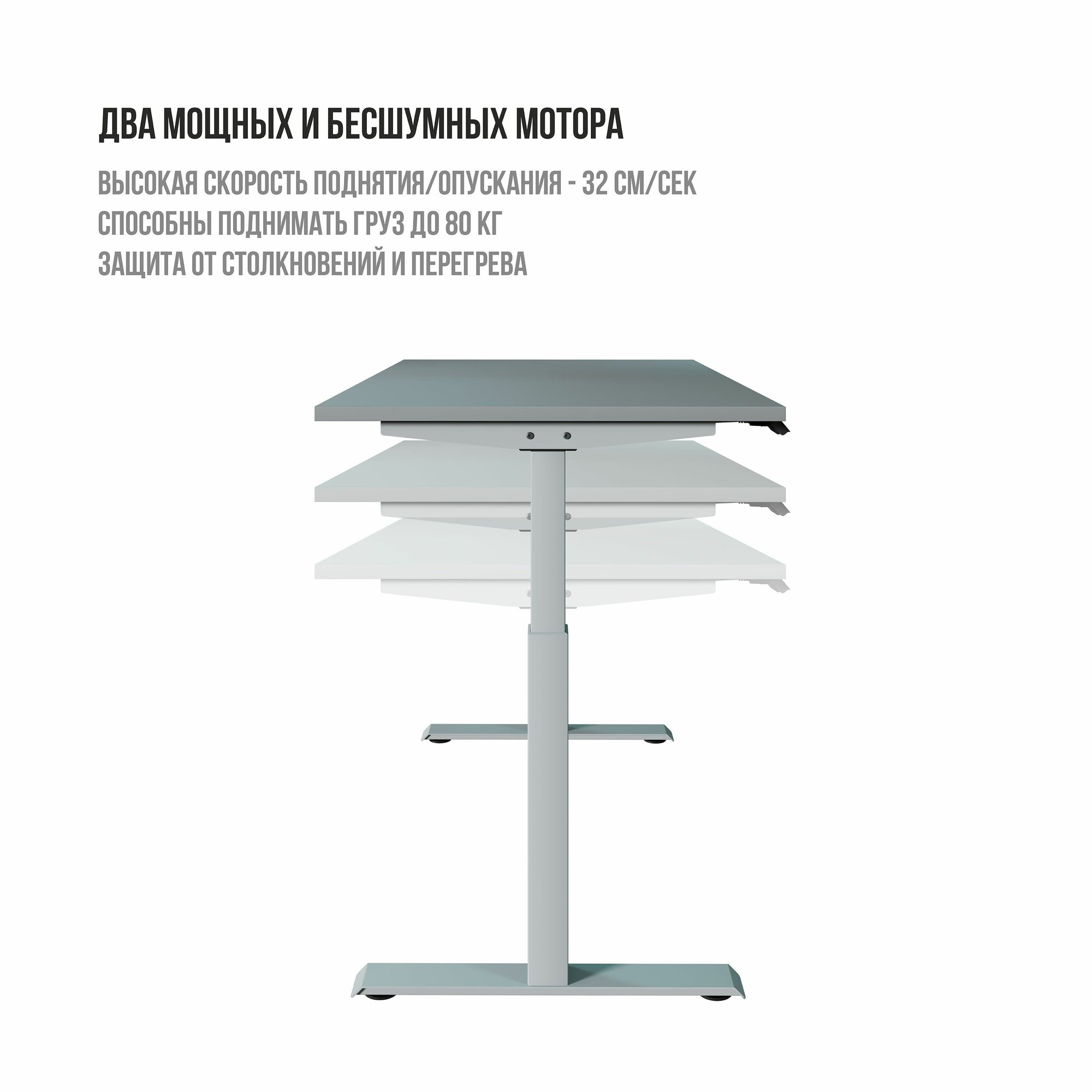 Стол компьютерный регулируемый по высоте Ergostol Optima 2.0 160х80 см, Серый асфальт/белый