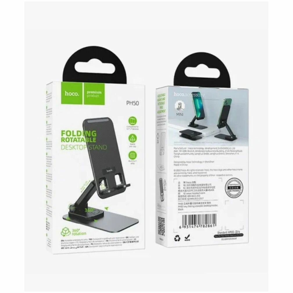 Подставка мини для телефонов 4,7-7 дюймов Hoco PH50, вращение 360 градусов, черная