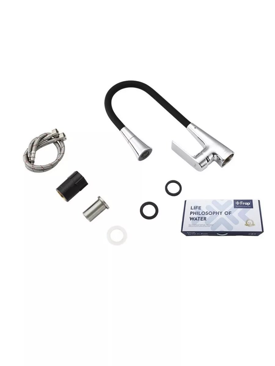 Смеситель для кухни с гибким изливом Frap F4471 черный/хром интересное: