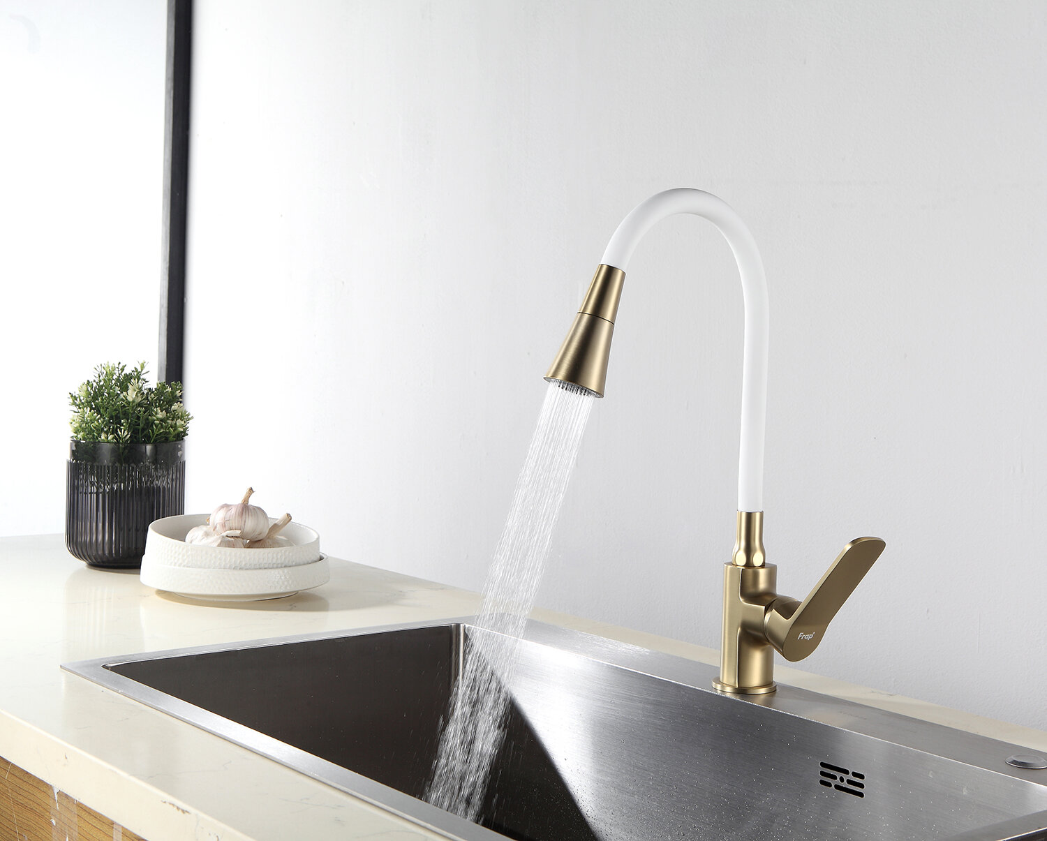 Смеситель для кухни FRAP F4462-3 с гибким изливом, белый/золотой сатин