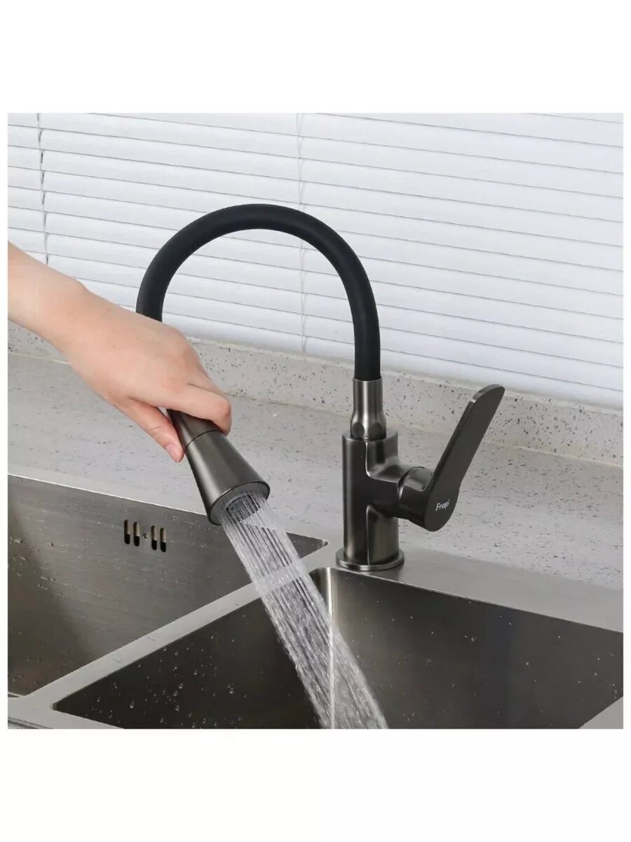 Смеситель для кухни с гибким, поворотным изливом Frap F4462-9 оружейная сталь