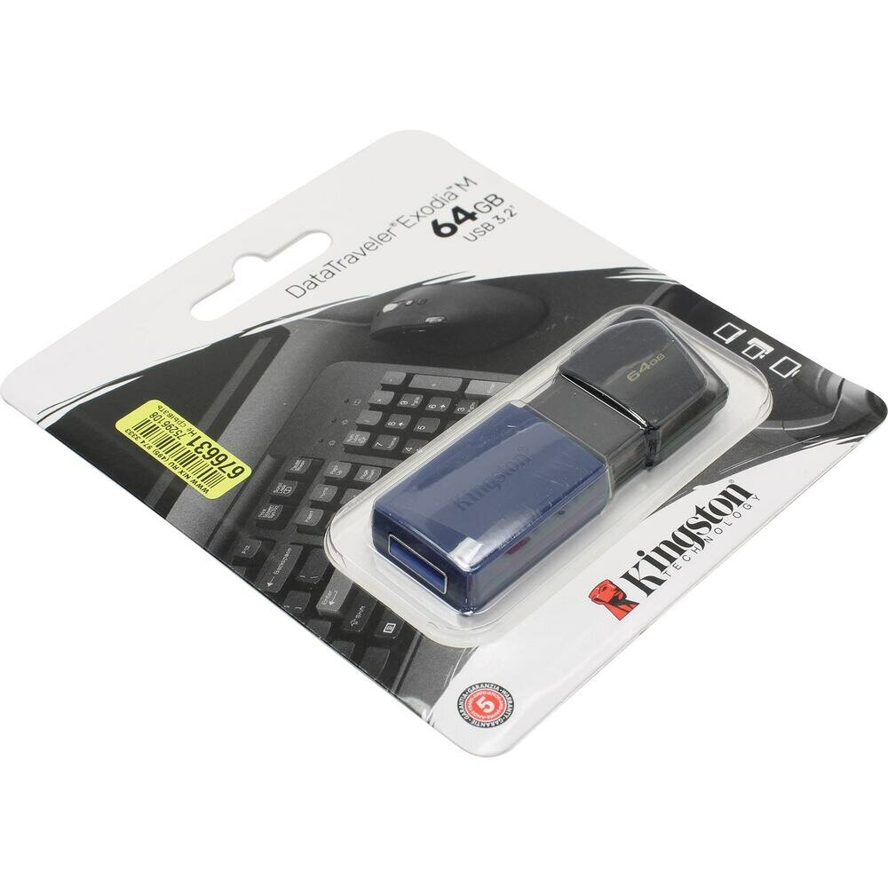 Флеш-диск 64 GB KINGSTON DataTraveler Exodia M, разъем USB 3.2, черный/синий, DTXM/64GB