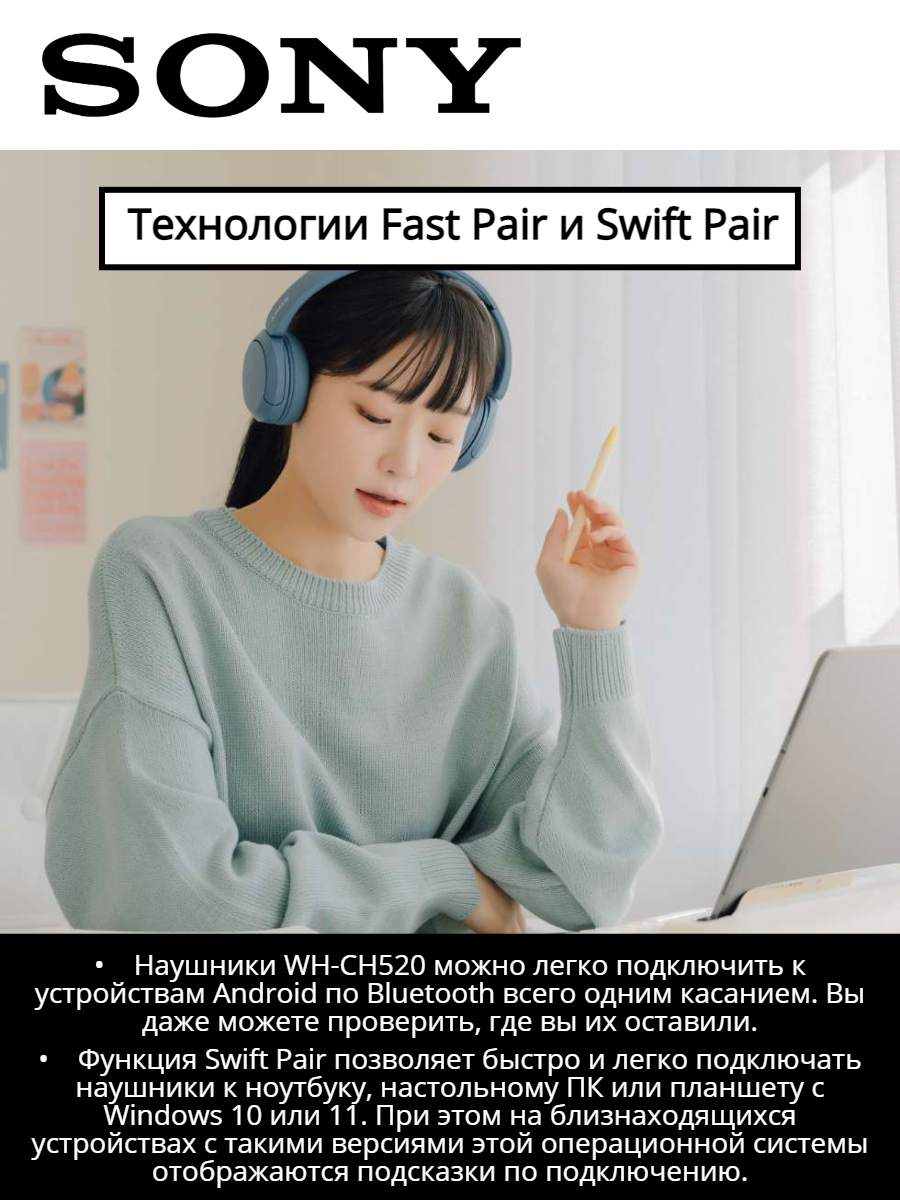СохранитьSony WH-CH520 blue наушники беспроводные накладные интересное: