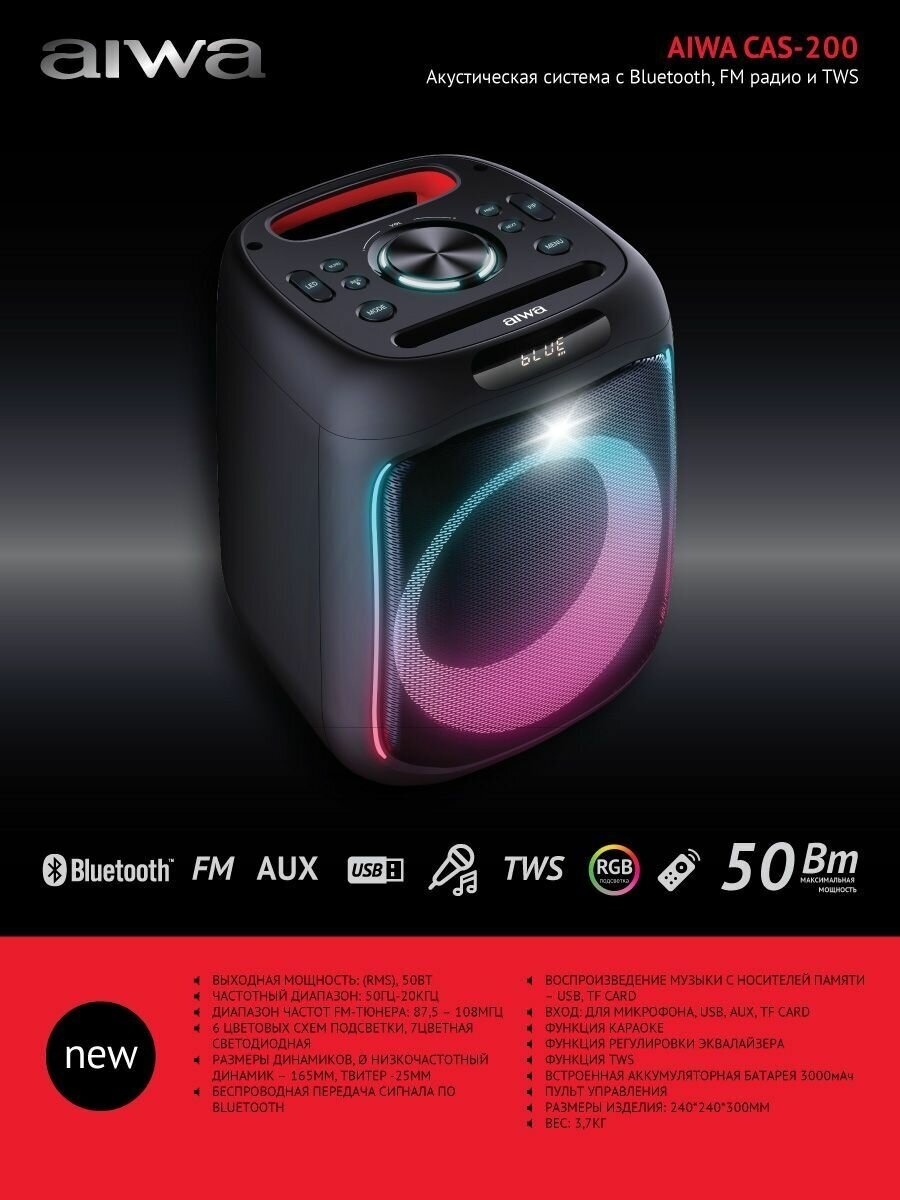 Акустическая система AIWA CAS-200 50 Вт, черный интересное: