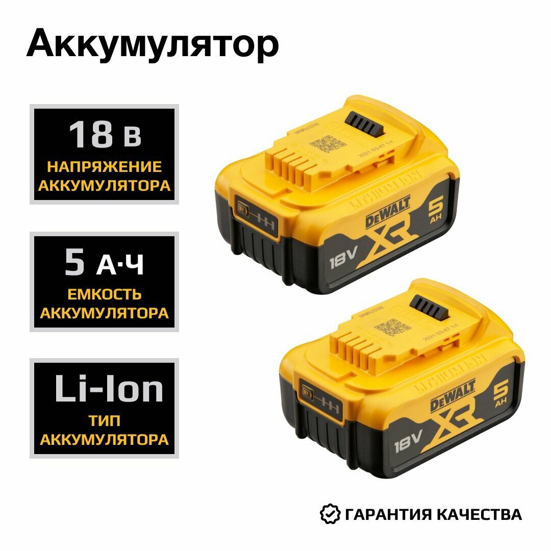 Набор аккумуляторный DEWALT, 18 В: ударная дрель-шуруповерт DCD796 и ударный шуруповерт DCF887, с 2 АКБ 5 Ач и ЗУ, в кейсе, DCK266P2 интересное: