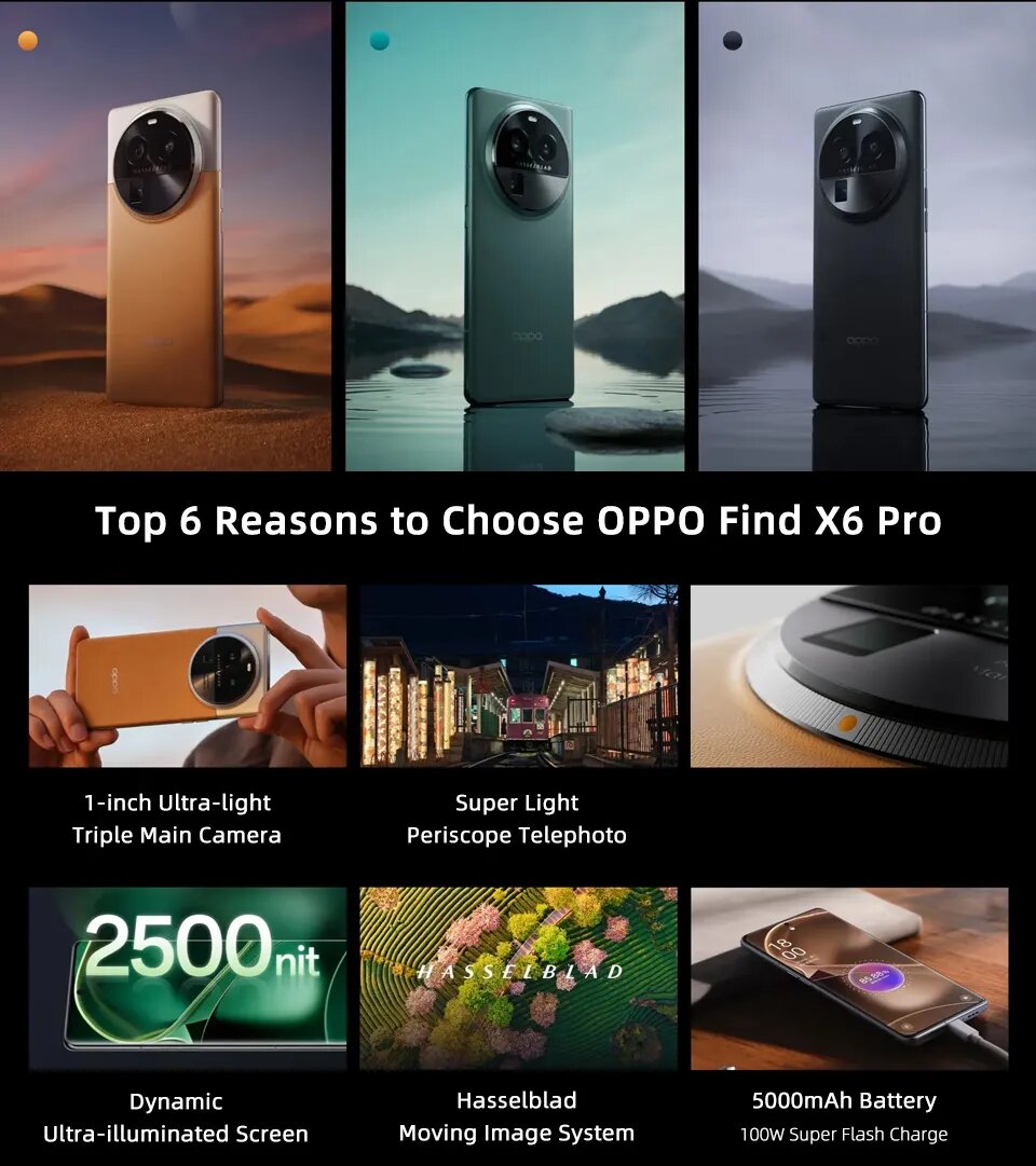 Смартфон OPPO Find X6 Pro, Snapdragon 8 Gen 2, 6,82 дюйма, AMOLED, 120 Гц, 5000 мА · ч, 100 Вт, камера 50 МП