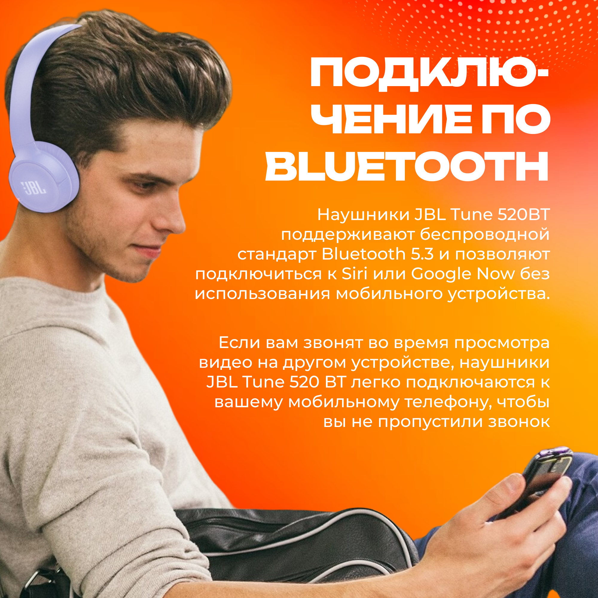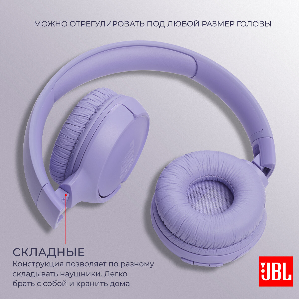 JBL Наушники JBL Tune 520BT, беспроводные, накладные, с микрофоном, Purple, оригинал