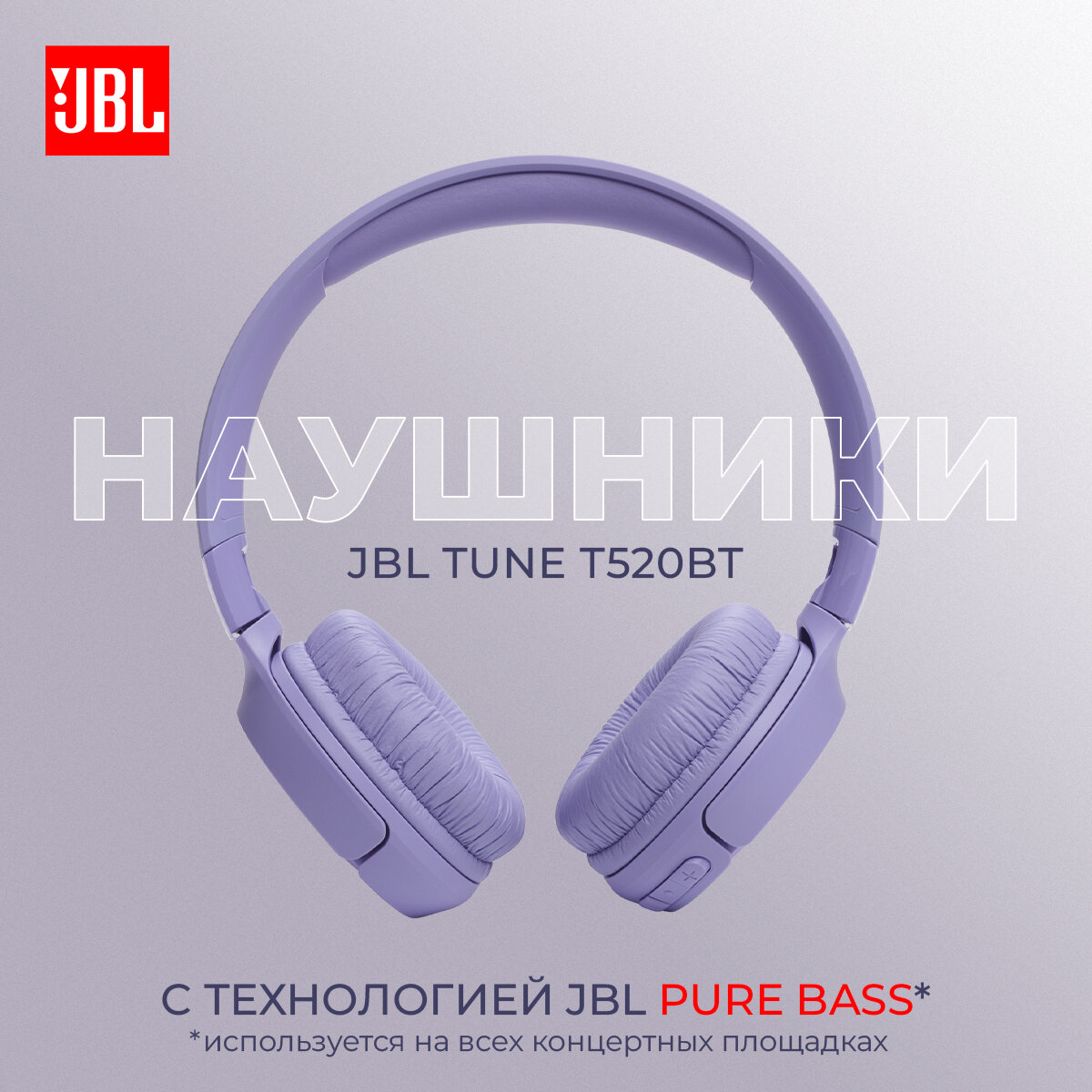 Купить Наушники беспроводные JBL TUNE T520BT с Bluetooth, с микрофоном, сиреневые