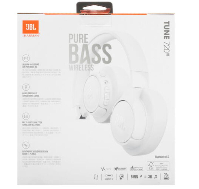 JBL Tune 720BT -Беспроводные накладные наушники-вкладыши с чистым басовым звучанием JBL