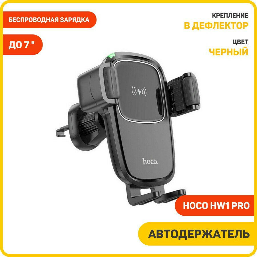 Держатель автомобильный HOCO HW1 на воздуховод c беспроводной зарядкой - черный