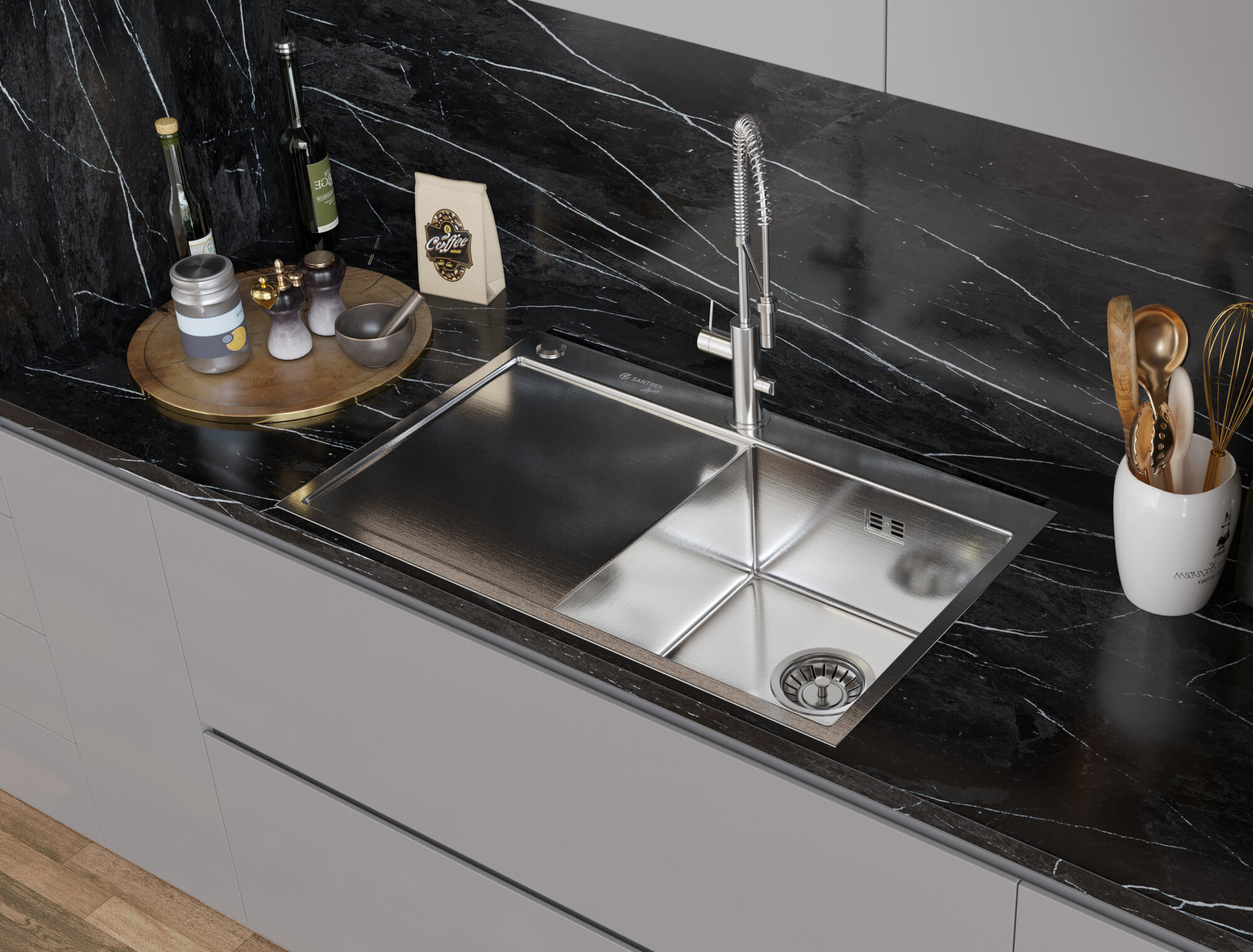 Мойка нержавеющая врезная 600х500х220 т 3,0 сатин D6050HRS правая (+ сифон + дозатор + колландер 440х220) SANTREK